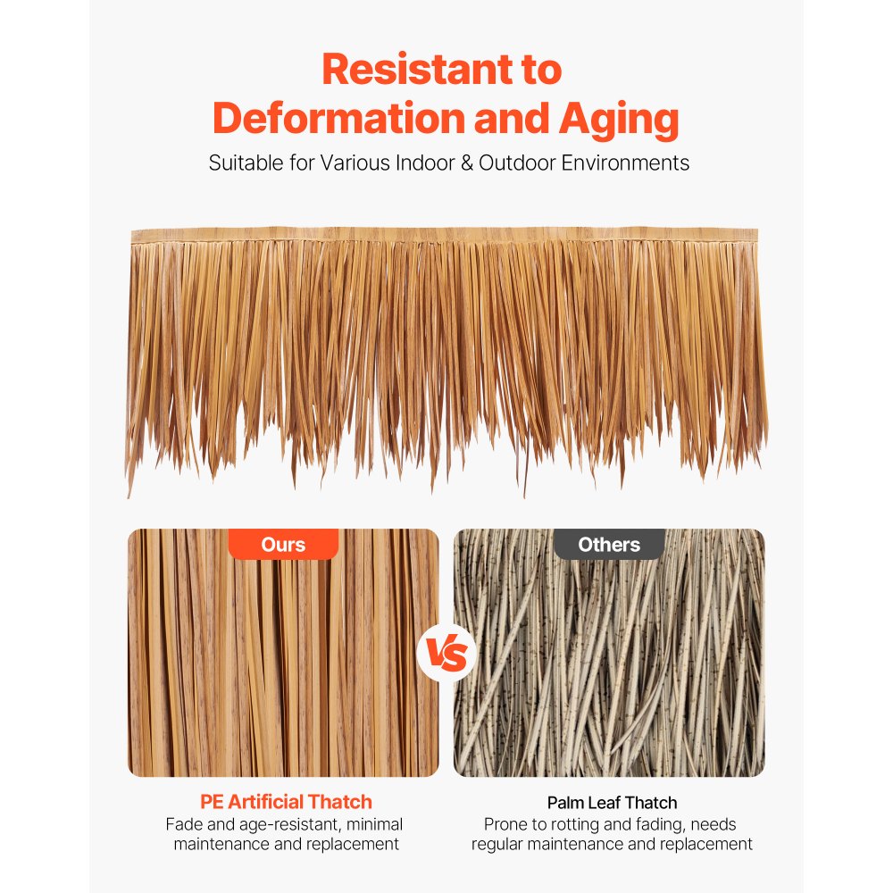 - Durable & Long-Lasting: Made with high-quality PE material, this thatch roofing is waterproof, corrosion-resistant, windproof, and heat-resistant, making it ideal for both indoor and outdoor use. It’s built to resist deformation and aging, requiring minimal maintenance for a lasting, beautiful appearance.