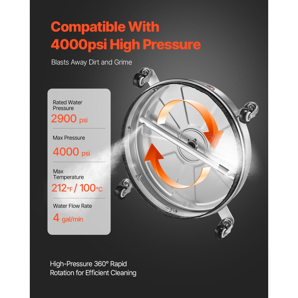 18" Pressure Washer Surface Cleaner 4 Wheels 4000 Max PSI 2 Extended Wands