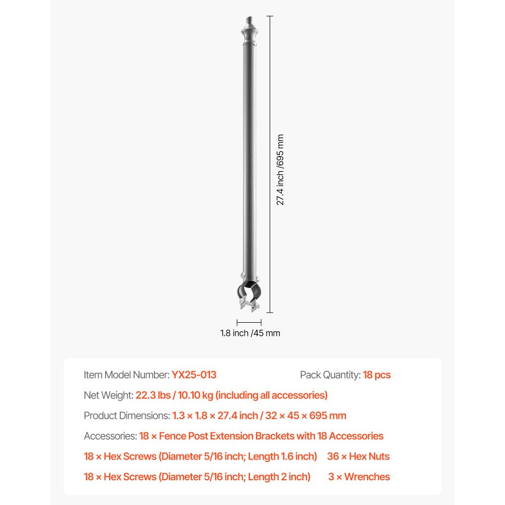- 27.4" Fence Height Extension: The chain link fence extension includes 18 fence post extenders that vertically raise your fence by 27.4 inches. The extender for top of fence is ideal for boosting security and privacy in yards, farms, and gardens. Helps prevent pets from jumping or escaping across various outdoor spaces