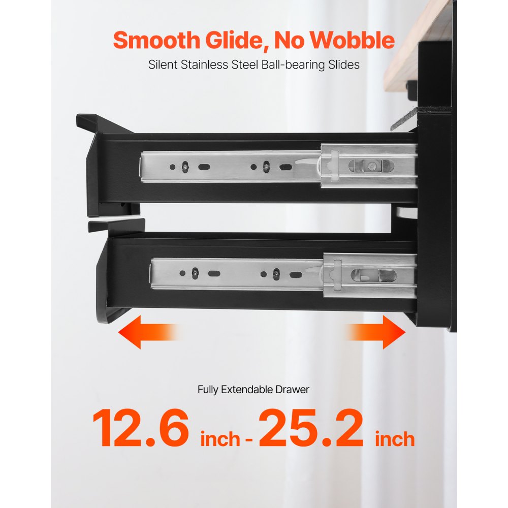 - Sturdy & Durable: This 13-inch desk drawer (single-layer weight capacity: 11 lbs; interior dimensions: 12.6" L, 9.6" D, 2.16" H) can be installed under your desk, expanding hidden storage space. The open-top shelf is ideal for quick-access items like an iPad or notebook. The drawer features a robust all-metal steel structure and a six-point mounting system for long-lasting security and stability.