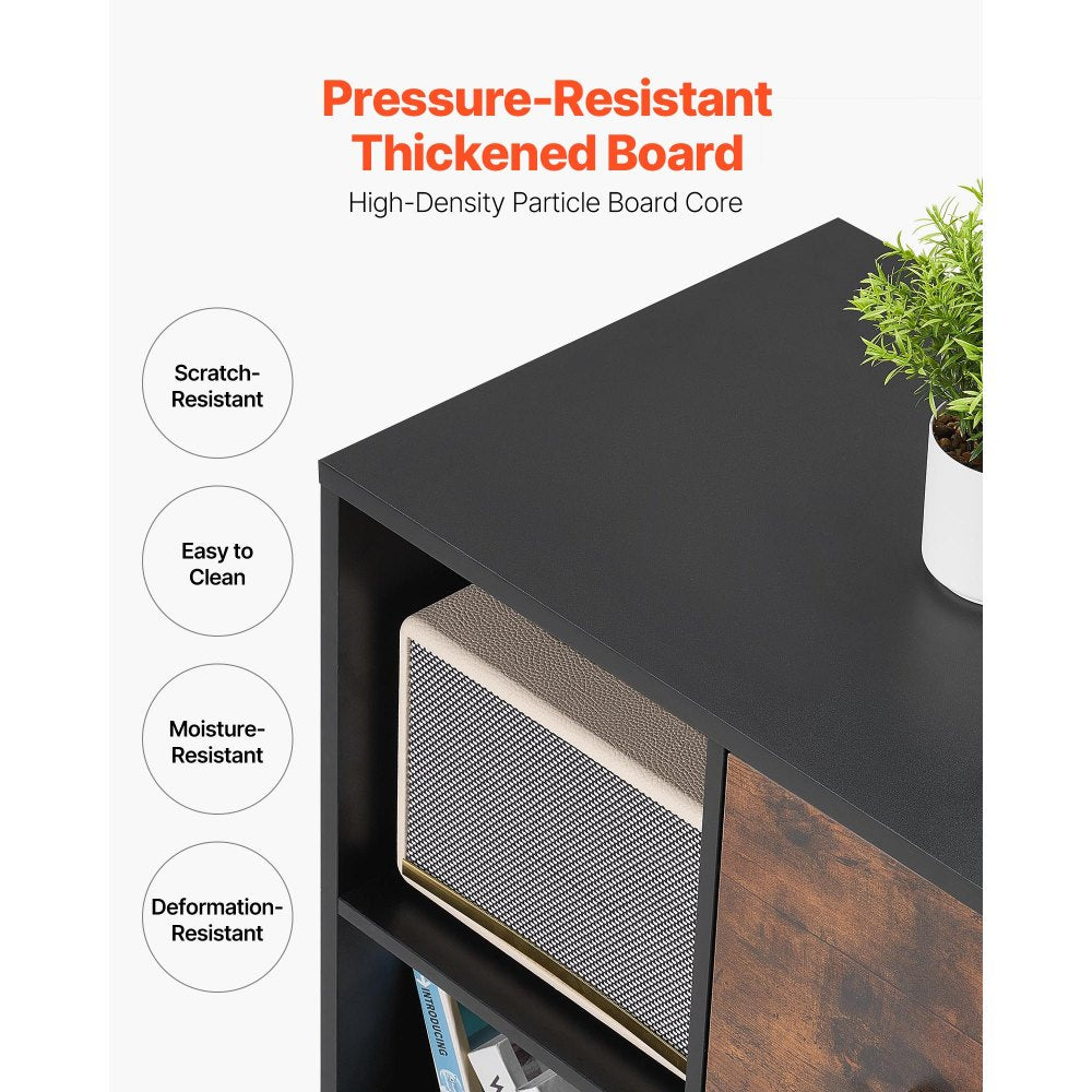 VEVOR 2 Drawer Wooden File Cabinet Mobile Filing Cabinet with Open Shelves Black