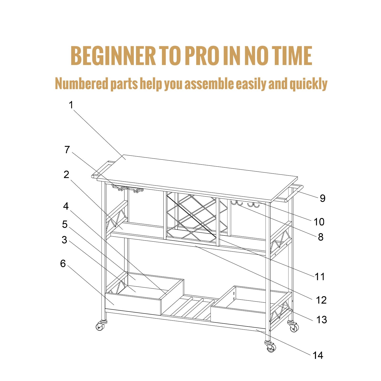 3-Tier Rolling Bar Cart with Wine Rack & Glass Holder, 136 kg Capacity
