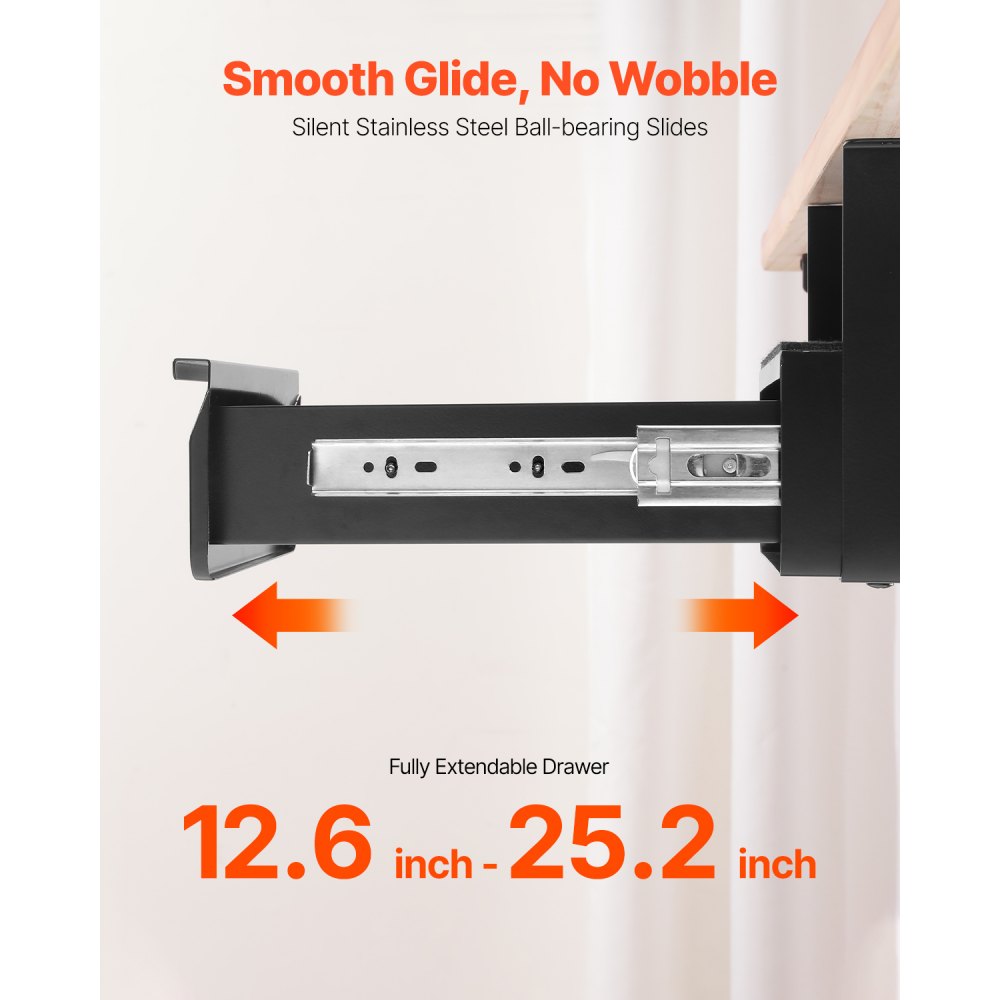 VEVOR 33 cm Lockable Under Desk Drawer Organizer Slide-out Drawer Home Office