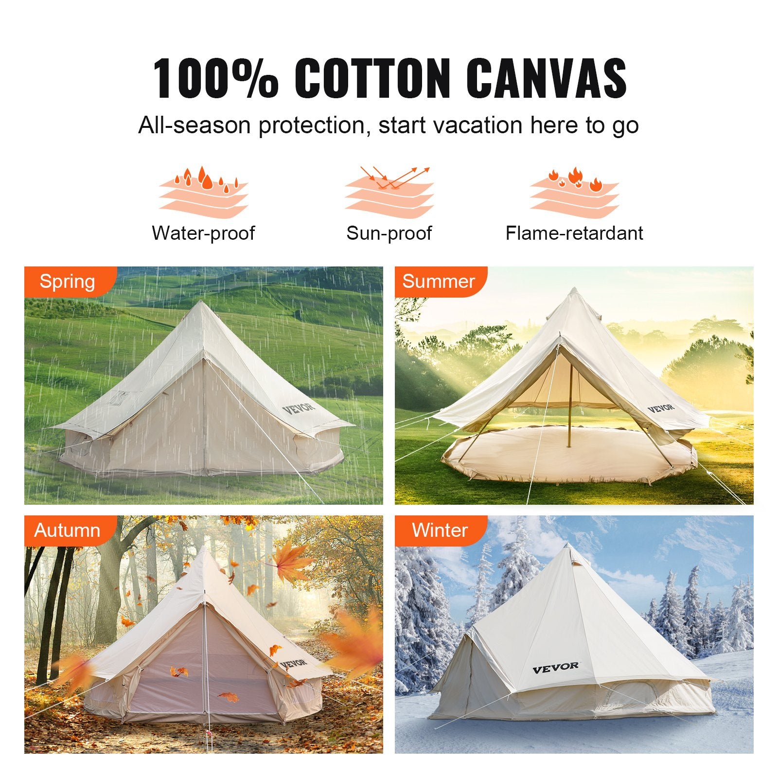 4-Season 8-10 People Large Waterproof Cotton Canvas Bell Tent With Stove for Camping