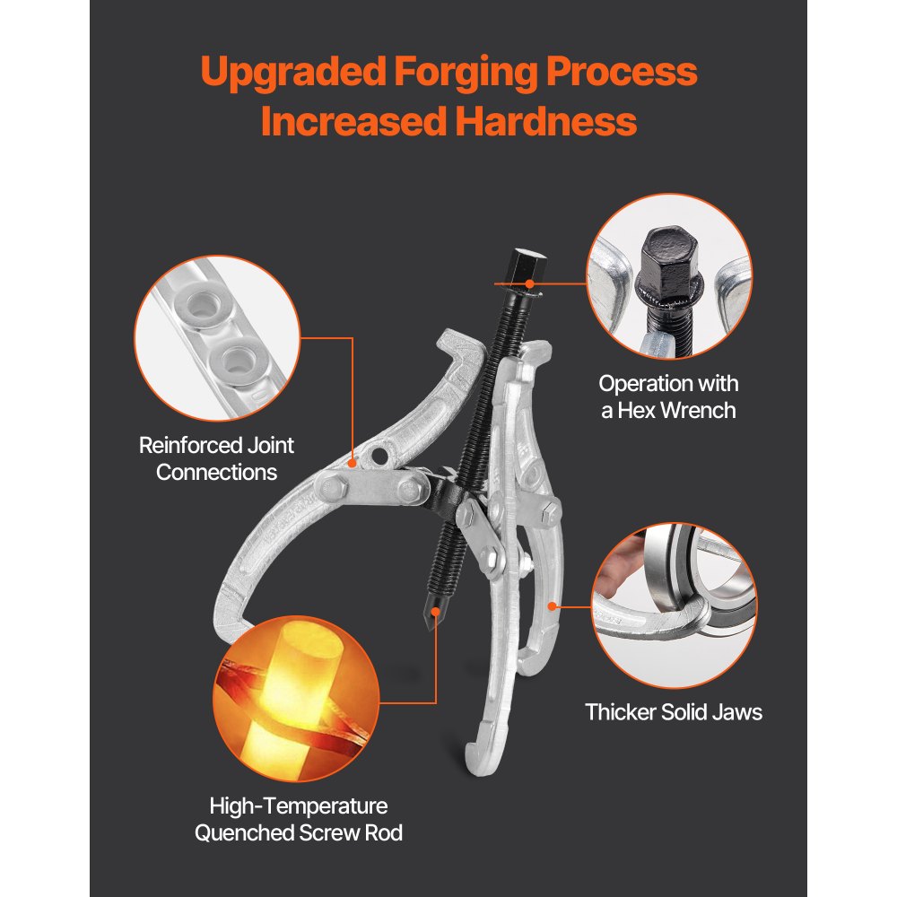 - Industrial-Grade Strength: The heat-treated screw is incredibly durable and the precision jaws ensure a strong grip. Made from tough industrial-grade 45# steel, our gear puller tool boasts a rust and corrosion-resistant coating for added longevity