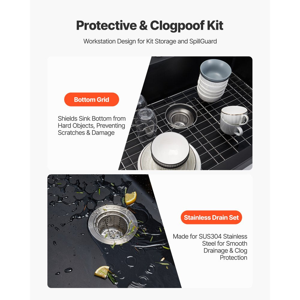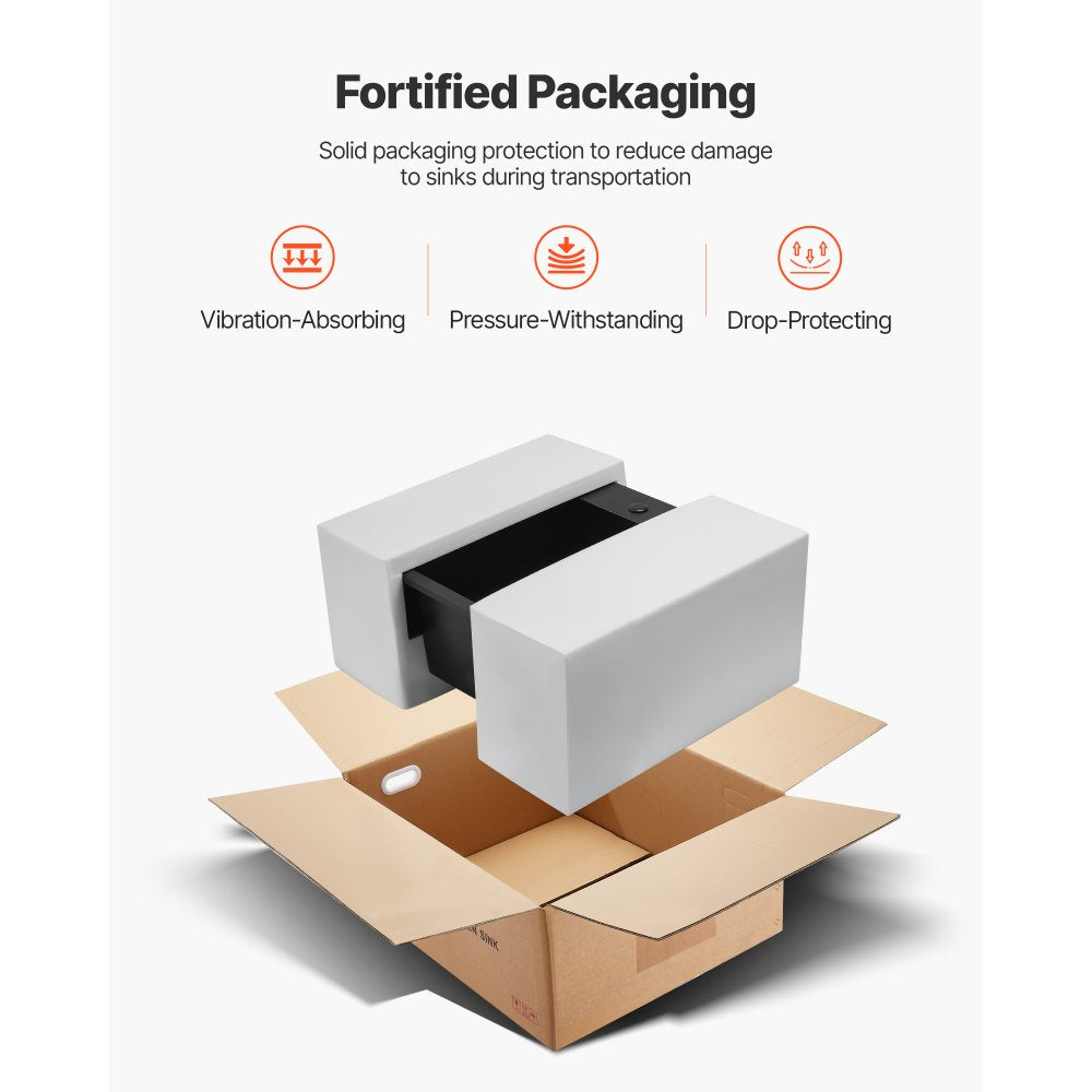 - Arrives Intact & Complete: The small kitchen sink is shielded by double-wall cartons, EPE foam, passed stacking/vibration/drop tests. Includes: Granite Kitchen Sink x1, Drain Set x1, Grid x1, Parts Set x1, Hole Template x1, Manual x1