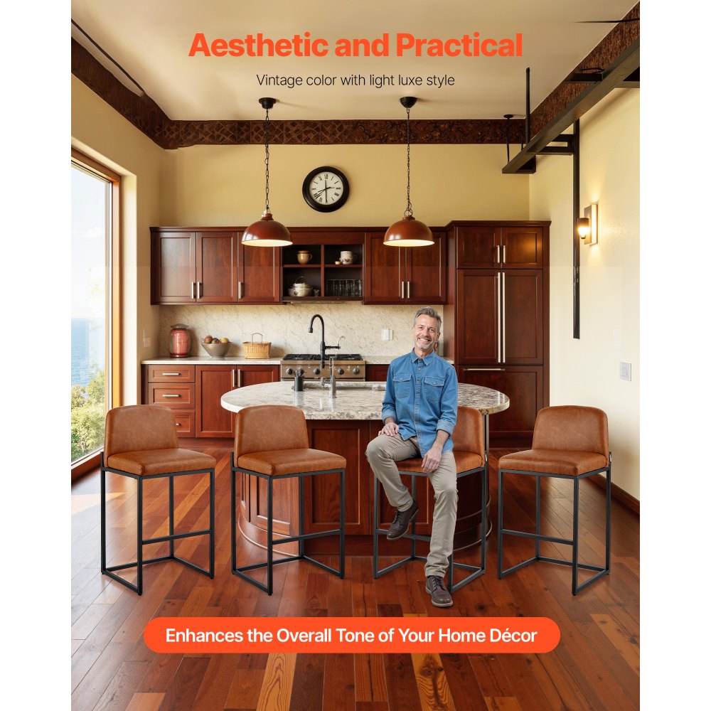 - Light Luxury and Versatility: The vintage brown PU leather combined with the streamlined curved backrest, suitable for both home and commercial spaces. The standard seat height fits various regular bar counters and kitchen islands