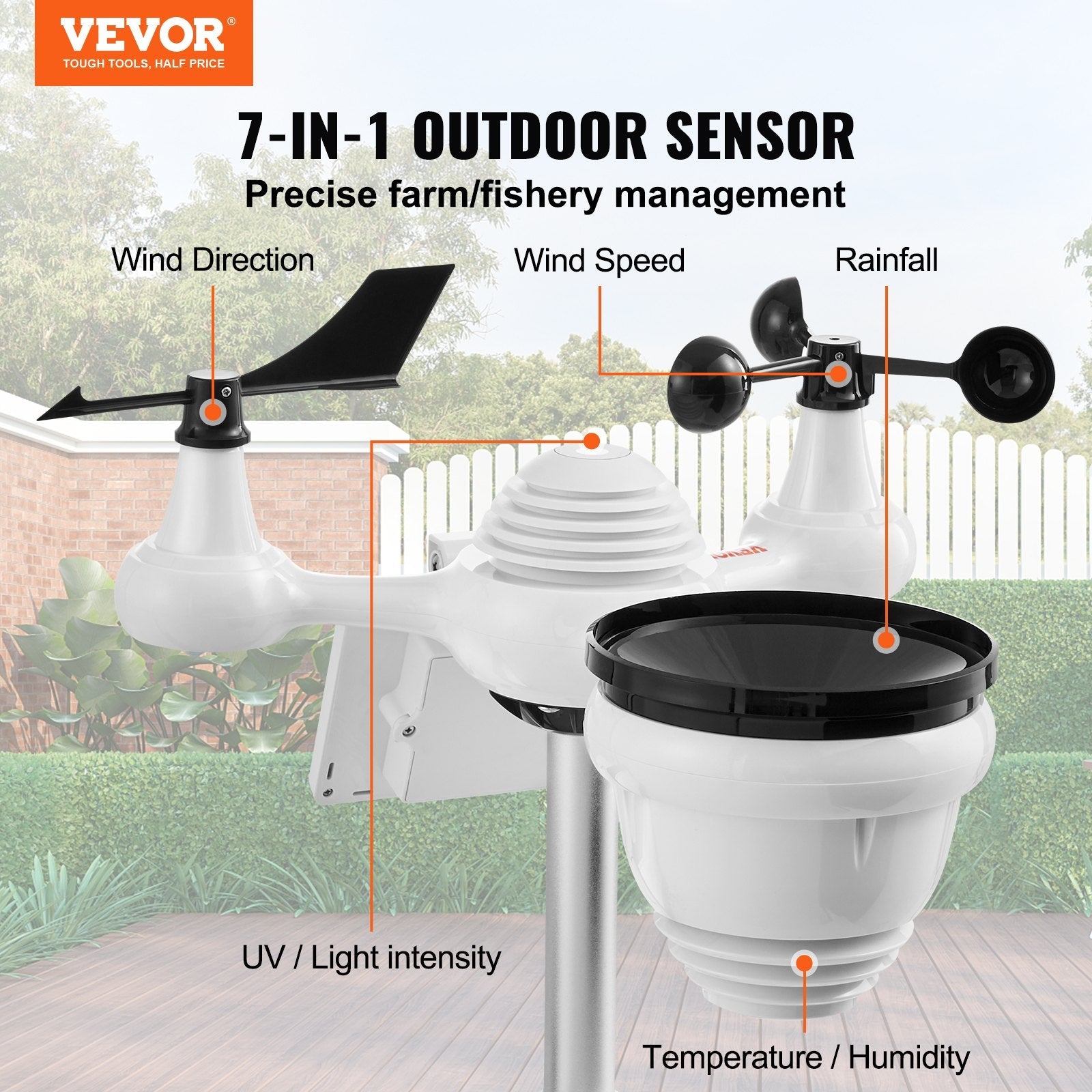 7-in-1 Wi-Fi Weather Station 177.8 mm TFT Display Wireless Outdoor Sensor