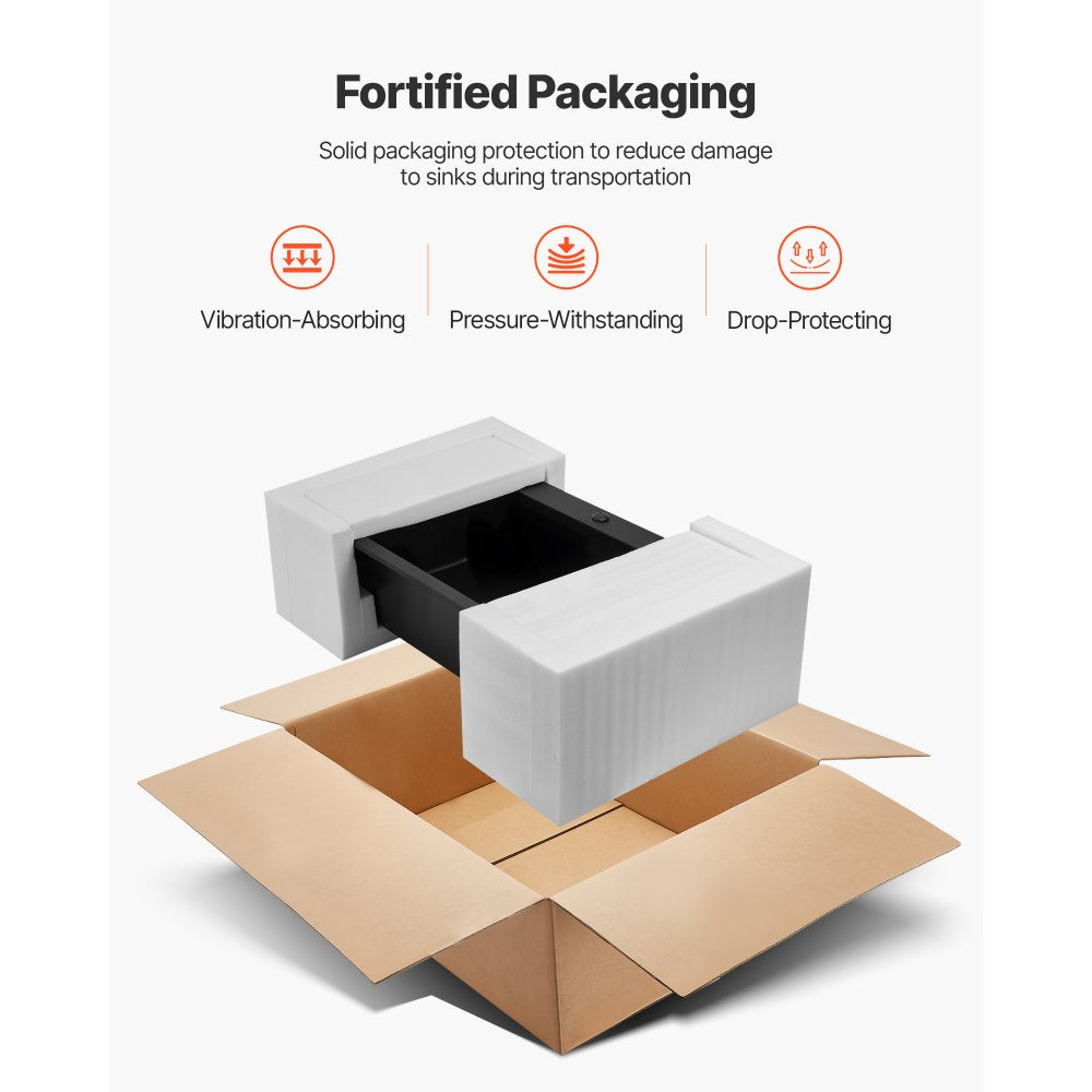 - Arrives Intact & Complete: The small kitchen sink is shielded by double-wall cartons, EPE foam, passed stacking/vibration/drop tests. Includes: Granite Kitchen Sink x1, Drain Set x1, Grid x1, Parts Set x1, Hole Template x1, Manual x1