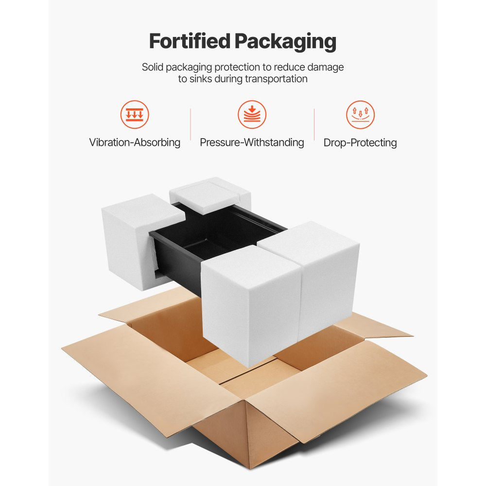 - Arrives Intact & Complete: The sink is shielded by double-wall cartons, EPE foam, passed stacking/vibration/drop tests. Includes: Granite Kitchen Sink x1, Drain Set x1, Grid x1, Roll-Up Rack x1, Board x1, Parts Set x1, Hole Template x1, Manual x1