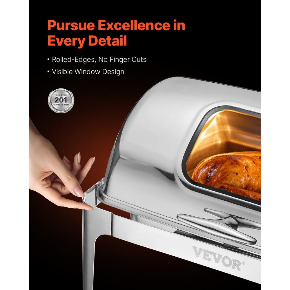 VEVOR 9Qt 1 Pack Rectangle Roll Top Chafing Dish Set with 2 Half Size Pans
