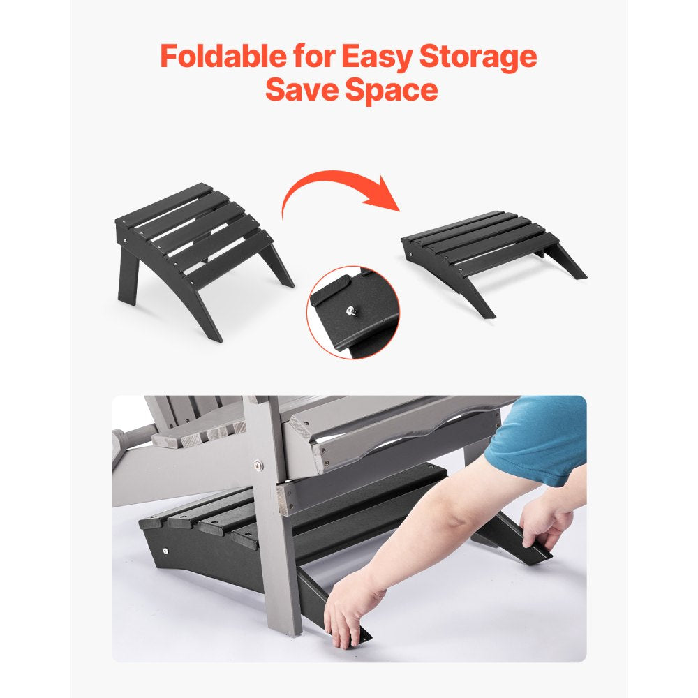 - Foldable Design: The Adirondack Ottoman folds flat for easy, compact storage, ideal for tight spaces. It can be conveniently stored under the Adirondack chair and pairs seamlessly with it, making it the ideal companion for any outdoor setting.