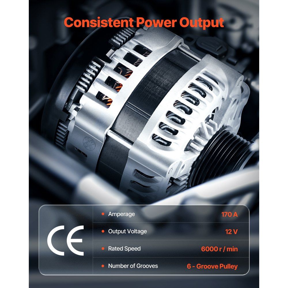 - Stable Performance: This alternator replacement delivers efficient 12V DC output to power your vehicle's systems. The 6-groove pulley ensures a steady, non-slip drive up to 6000 RPM—keeping ignition, lighting, and infotainment running smoothly