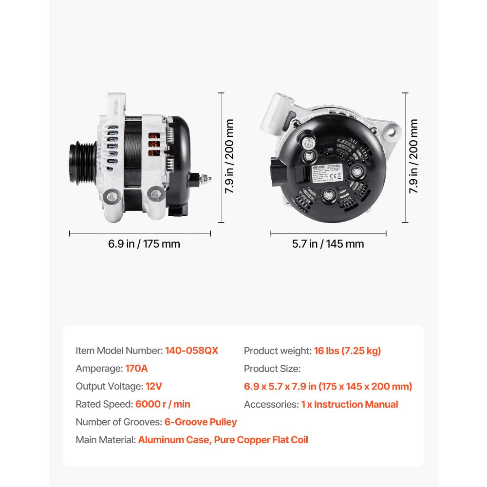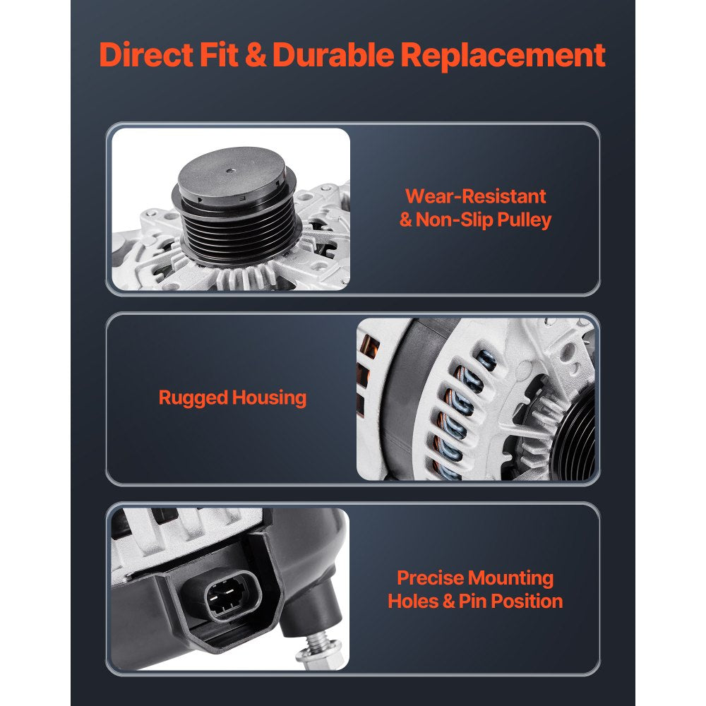 - Durable Materials: Our automotive replacement alternator is built with high-temp-resistant copper coils and a lightweight aluminum housing with cooling fan. This combo improves heat dissipation and conductivity while withstanding tough conditions