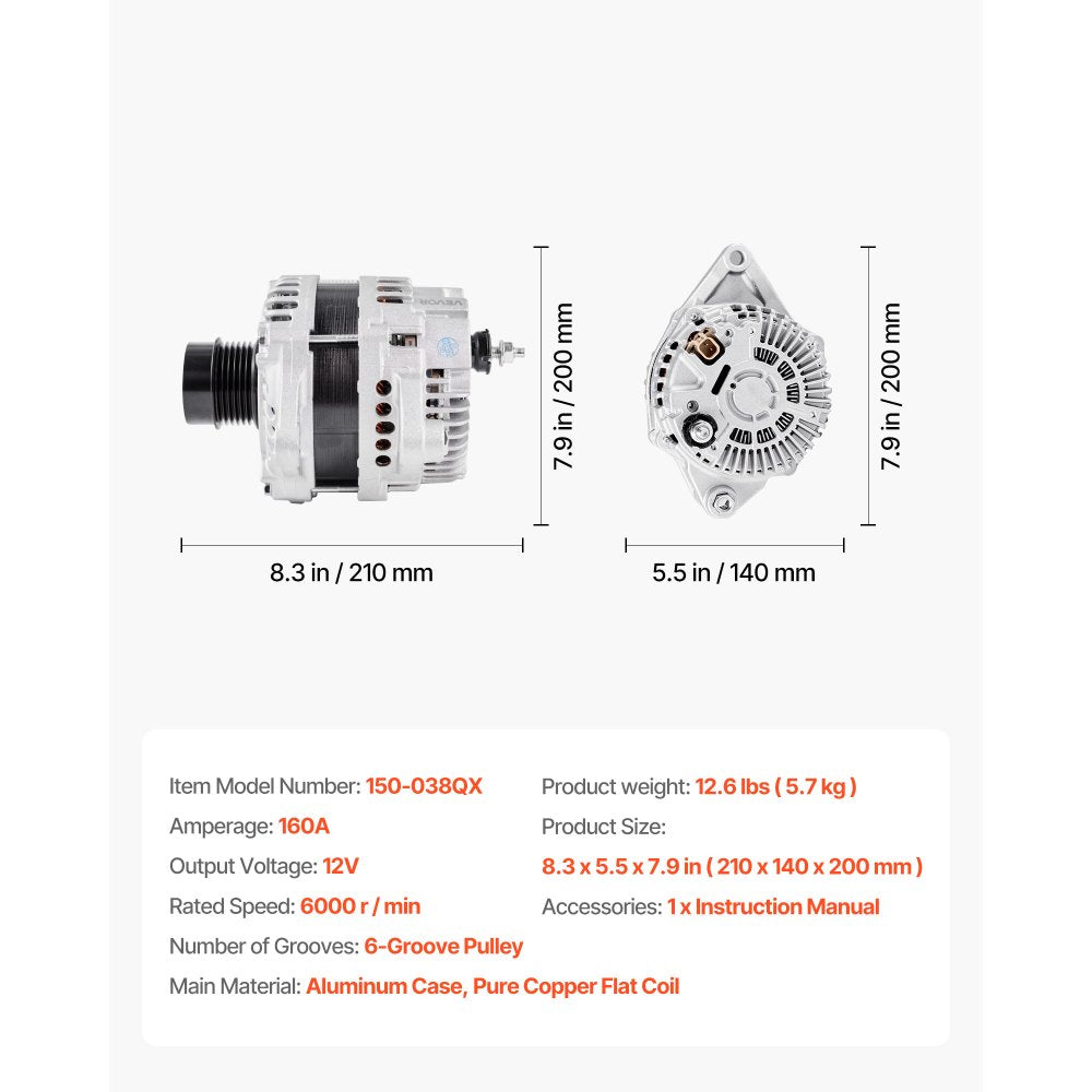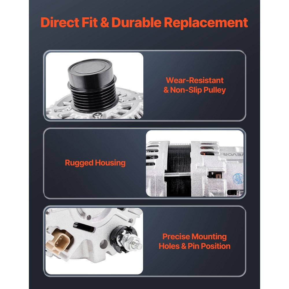 - Durable Materials: Our automotive replacement alternator is built with high-temp-resistant copper coils and a lightweight aluminum housing with cooling fan. This combo improves heat dissipation and conductivity while withstanding tough conditions