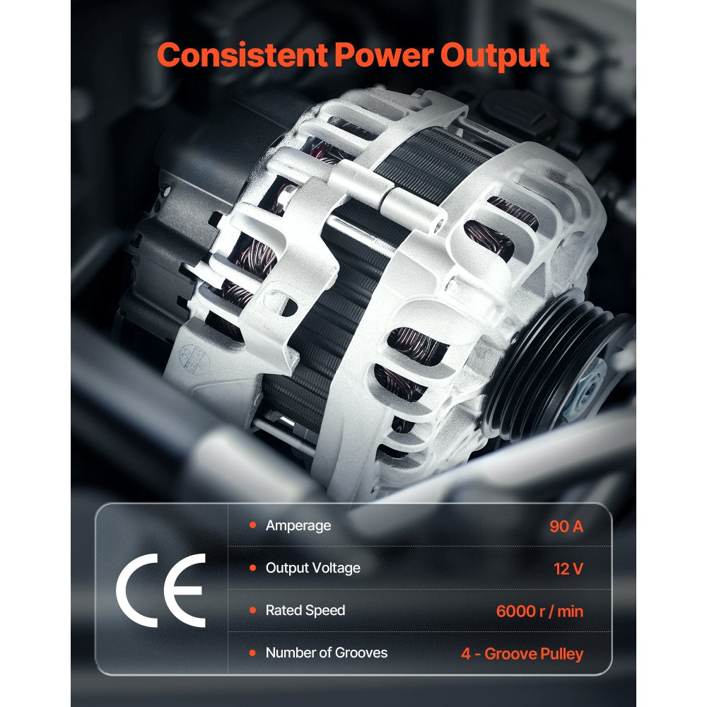 - Stable Performance: This alternator replacement delivers efficient 12V DC output to power your vehicle's systems. The 4-groove pulley ensures a steady, non-slip drive up to 6000 RPM—keeping ignition, lighting, and infotainment running smoothly