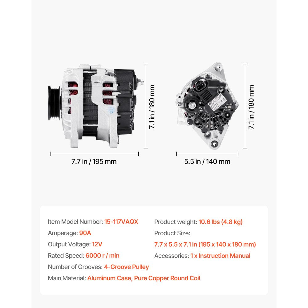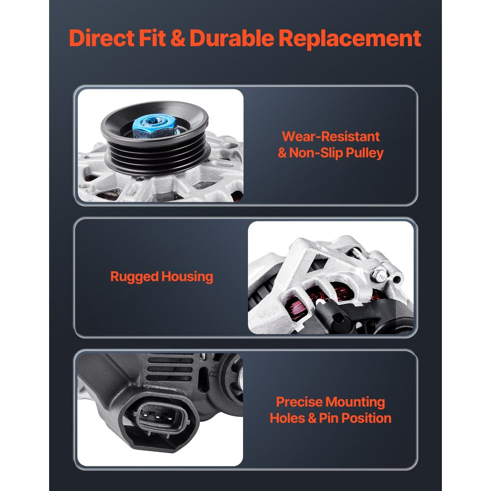 - Durable Materials: Our automotive replacement alternator is built with high-temp-resistant copper coils and a lightweight aluminum housing with cooling fan. This combo improves heat dissipation and conductivity while withstanding tough conditions