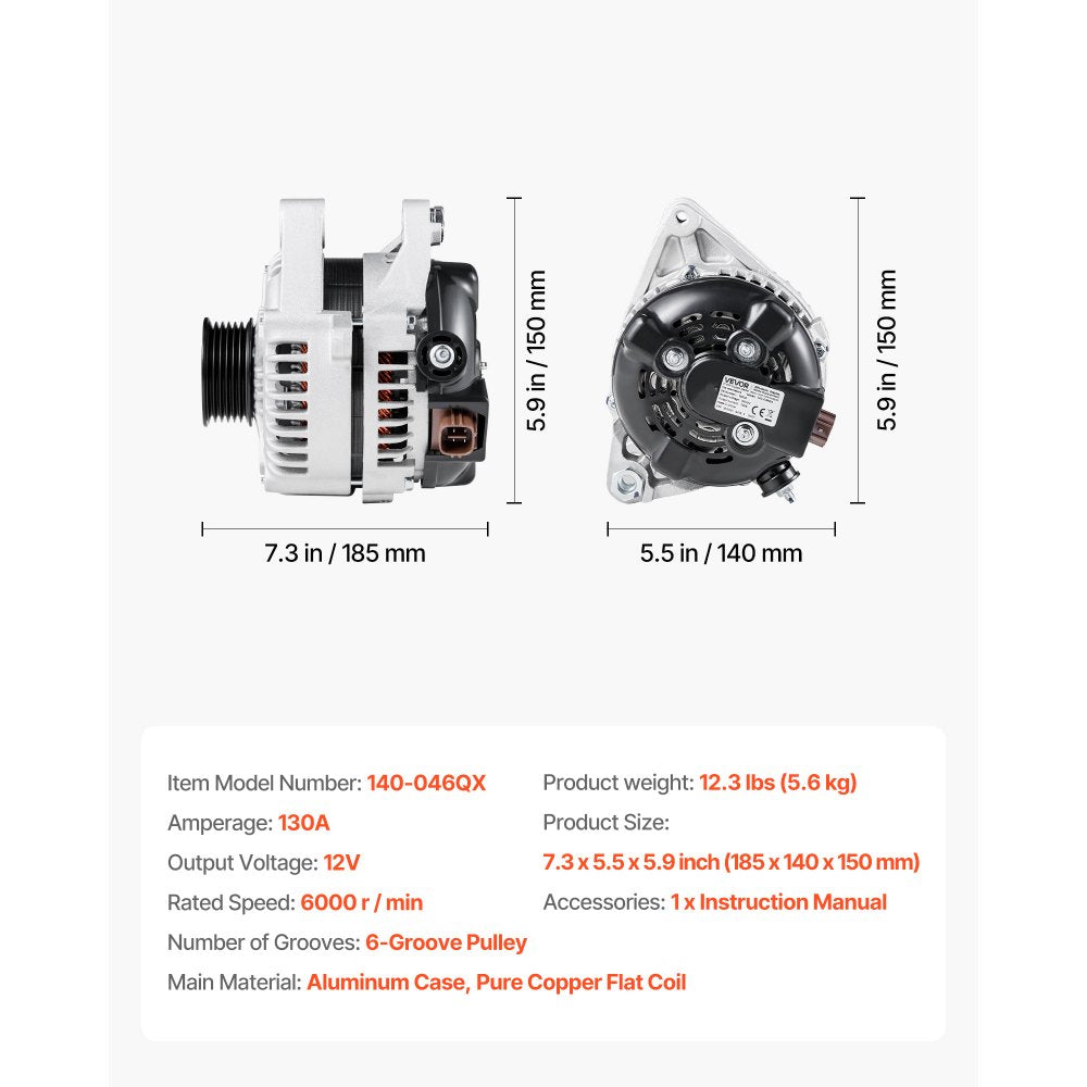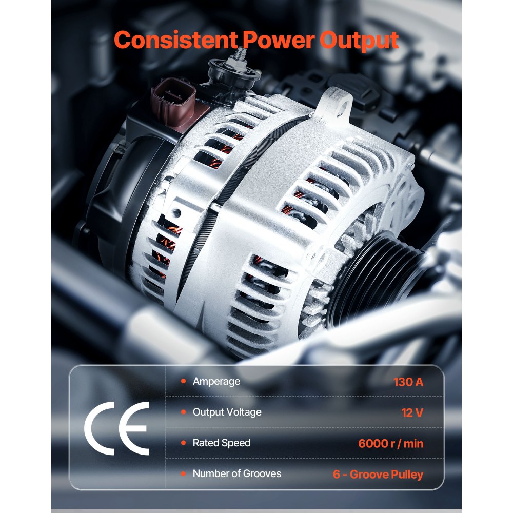 - Stable Performance: This alternator replacement delivers efficient 12V DC output to power your vehicle's systems. The 6-groove pulley ensures a steady, non-slip drive up to 6000 RPM—keeping ignition, lighting, and infotainment running smoothly