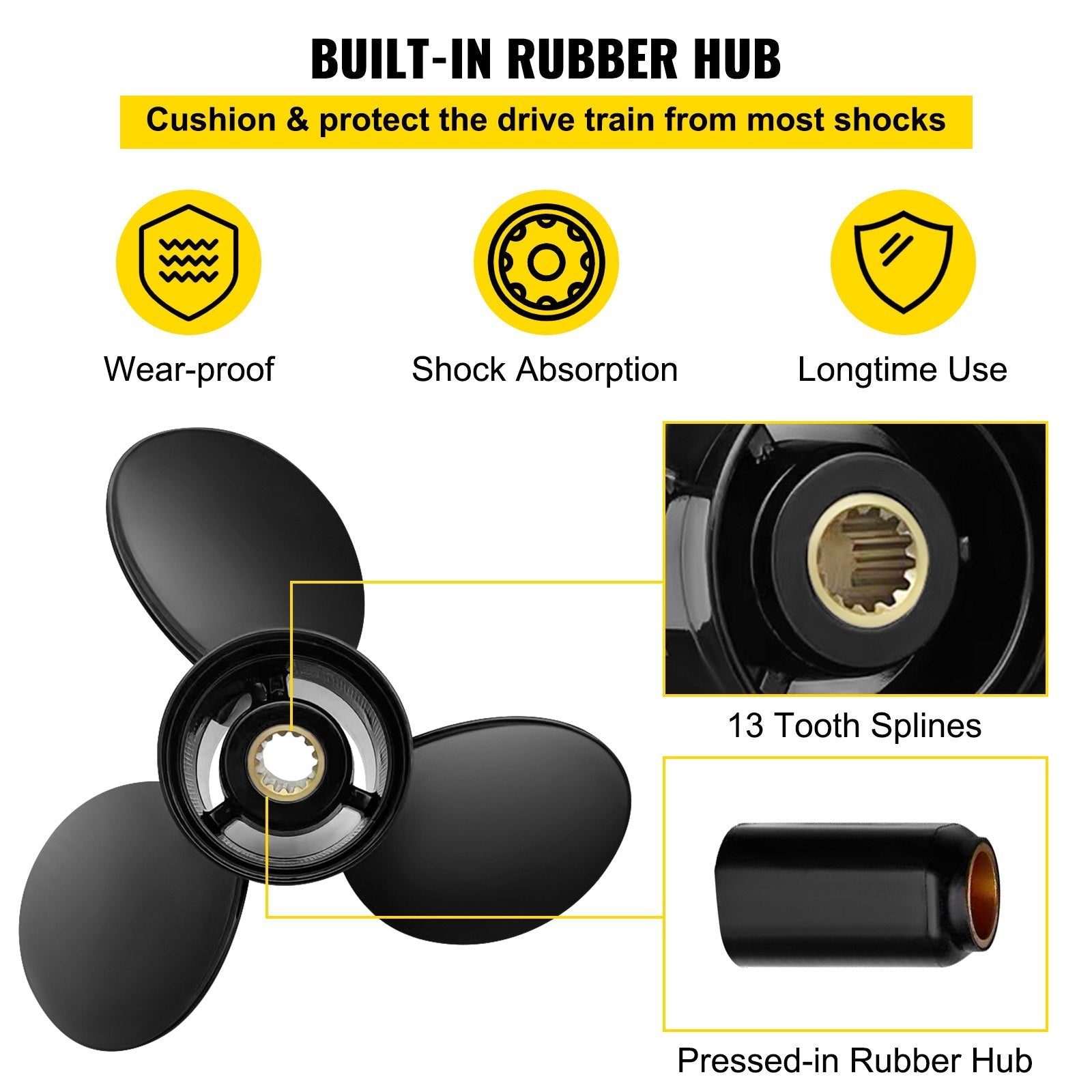 Outboard Propeller, Replace for OEM 765183, 3 Blades 13 1/4\" x 17\" Pitch Aluminium Boat Propeller, Compatible with 40-140HP 2-Stroke Evinrude Outboard, with 13 Tooth Splines, RH