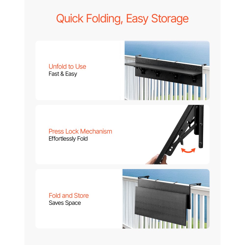 - Space-Saving and Foldable: When not in use, simply press and fold the patio railing table to save precious balcony space. Its compact design ensures it doesn’t take up unnecessary room, keeping your outdoor area neat and organized.