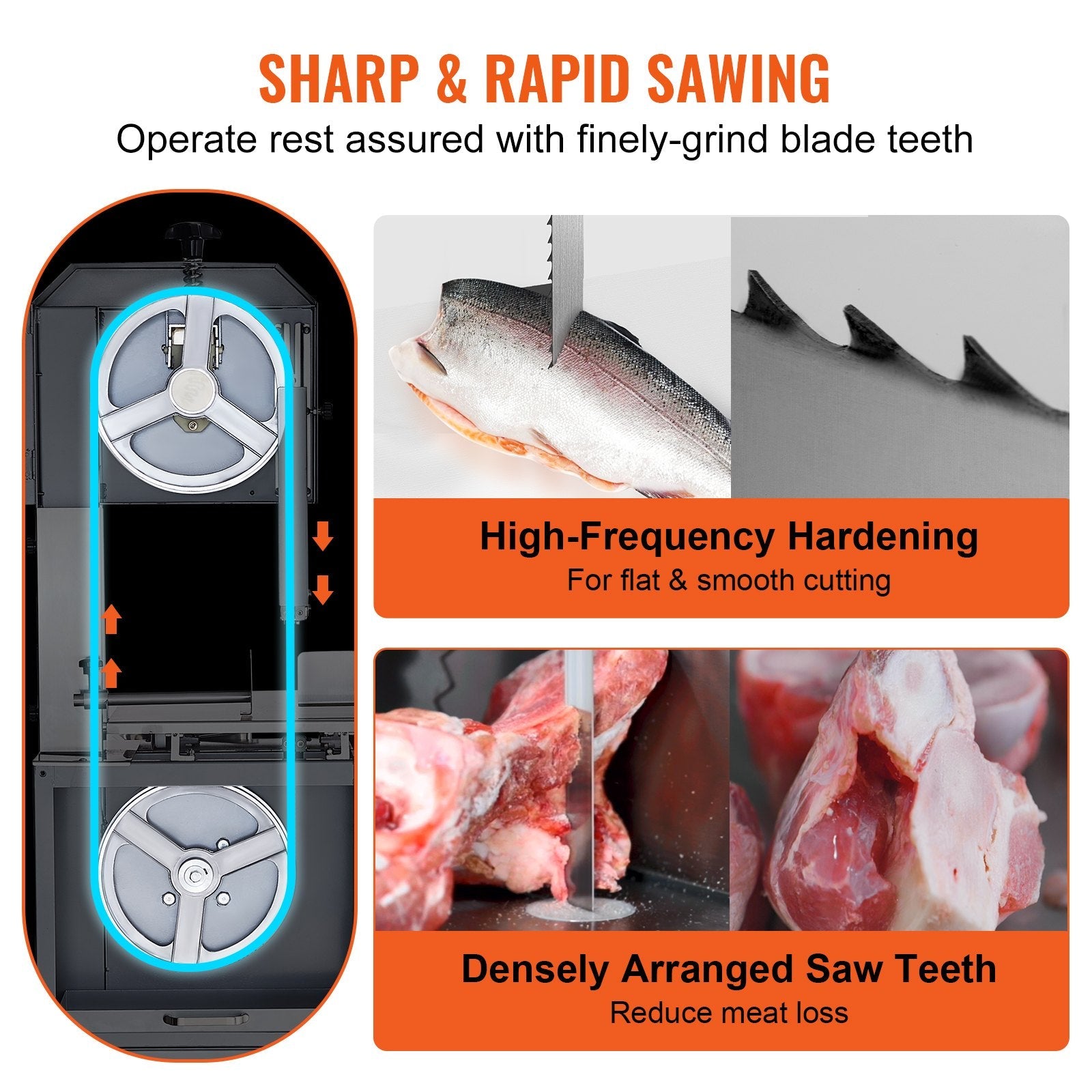 Carbon Steel Meat and Bone Cutting Band Saw Blades, 5-Pack, 2m x 16mm