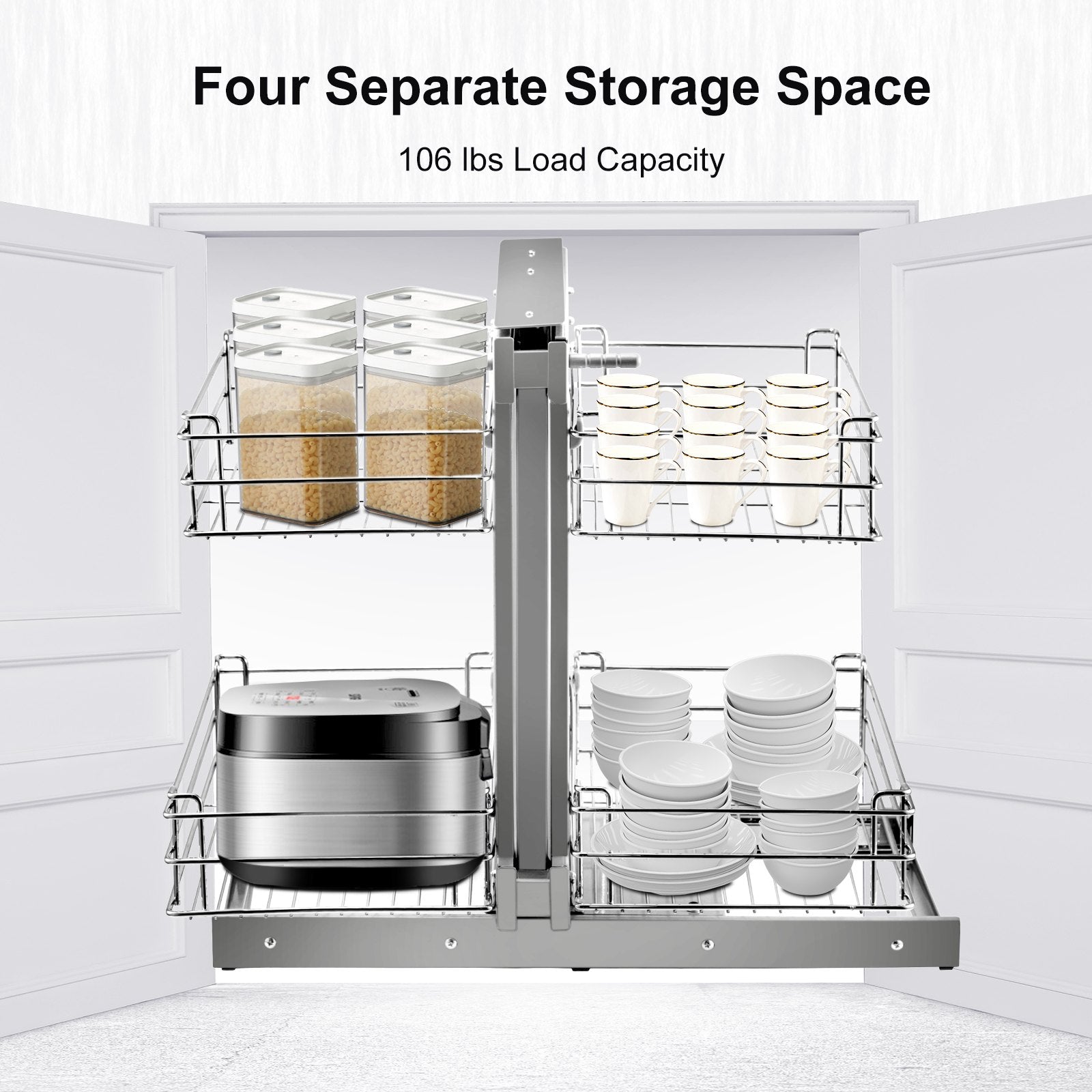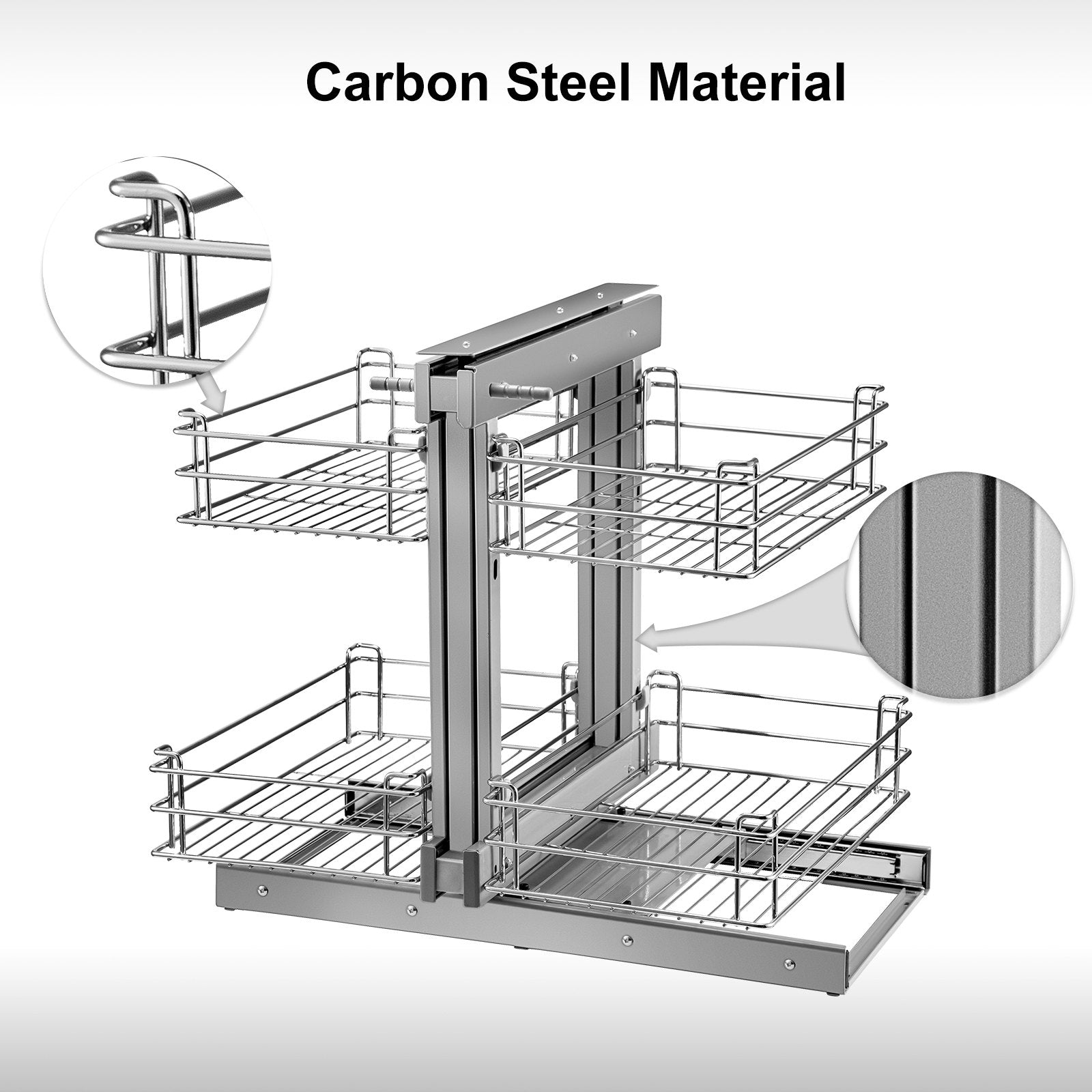 Load Capacity: 4 x 12 kg/26.5 lbs,Full Product Dimensions: 630 x 480 x 570 mm/24.8 x 18.9 x 22.4 inch,Minimum Installation Cabinet Size: 800 x 520 x 650 mm/31.5 x 20.5 x 25.6 inch,Color: Silver,Surface Treatment: Polished Chrome Finished,Material: Carbon Steel,Minimum Cabinet Opening Size: 400 mm/15.7 inch,Single Basket Dimensions: 420 x 280 x 85 mm/16.5 x 11 x 3.3 inch,Item Weight:18.5 kg/ 40.8 lbs