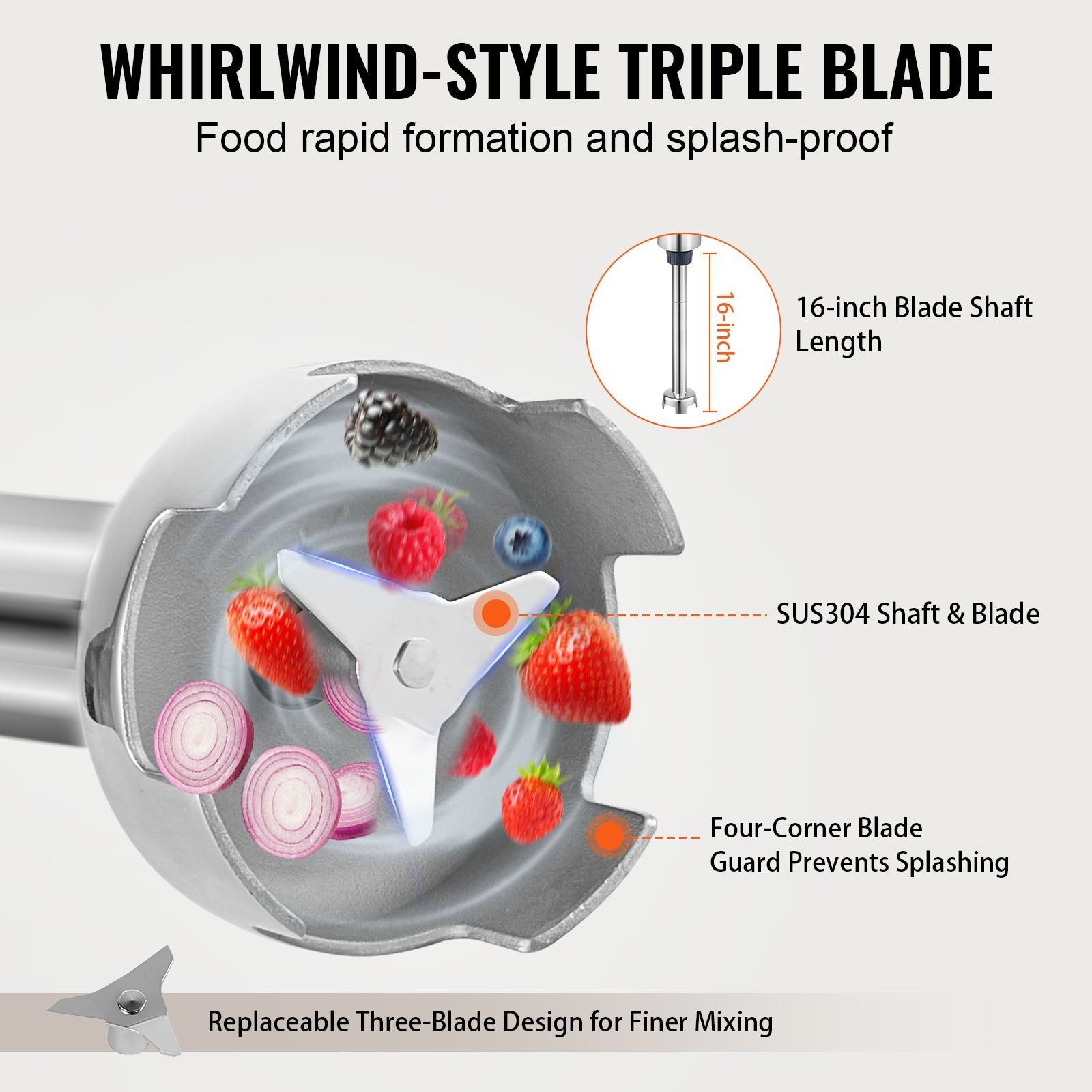 Commercial Hand Mixer 500W Heavy Duty Immersion Blender for Soups & Sauces