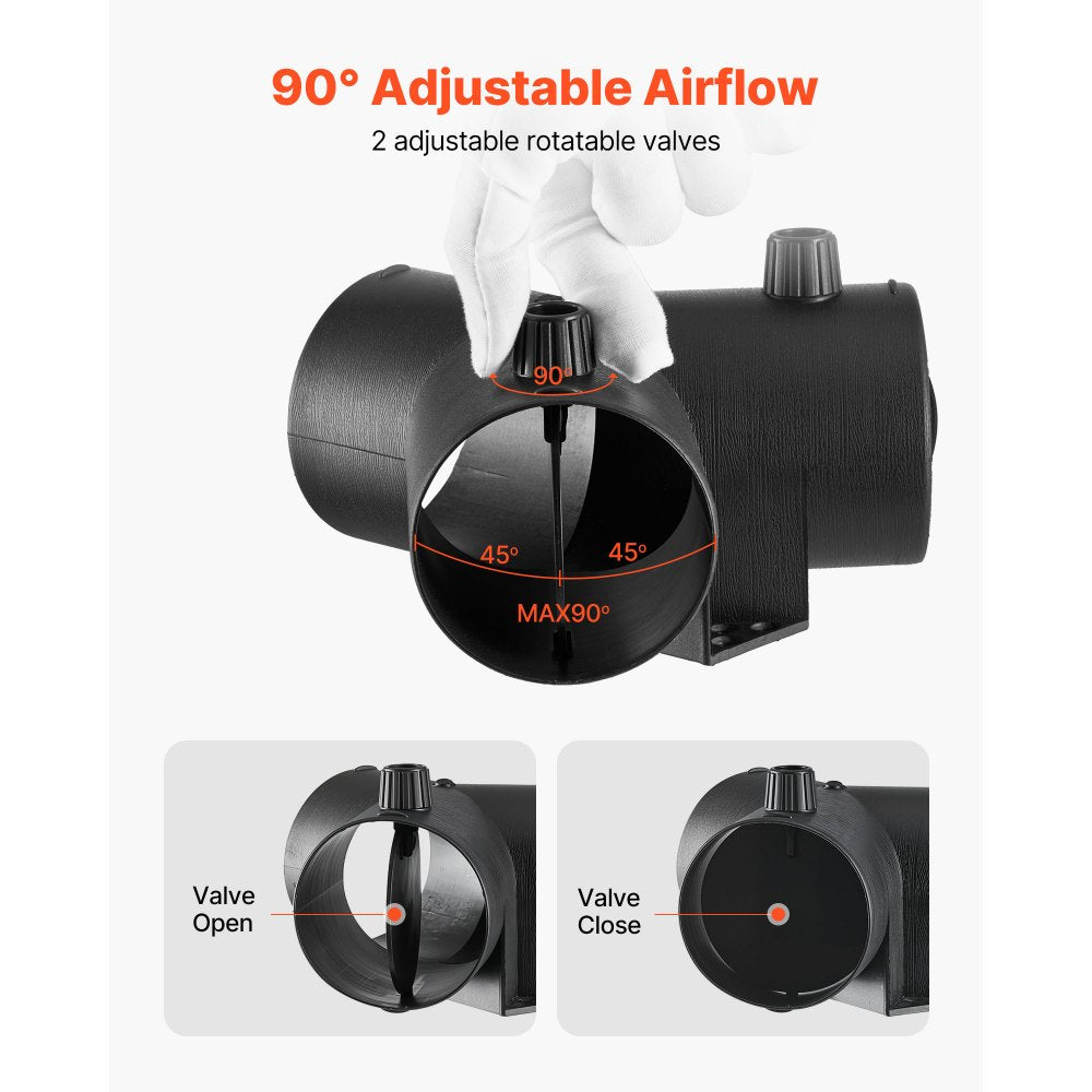 - Flexible Airflow Controller: The diesel heater duct connector accessories feature a T-shape outlet with 90° adjustable valves. This design efficiently directs airflow and allows you to easily select the outlet position for better heating control in various settings