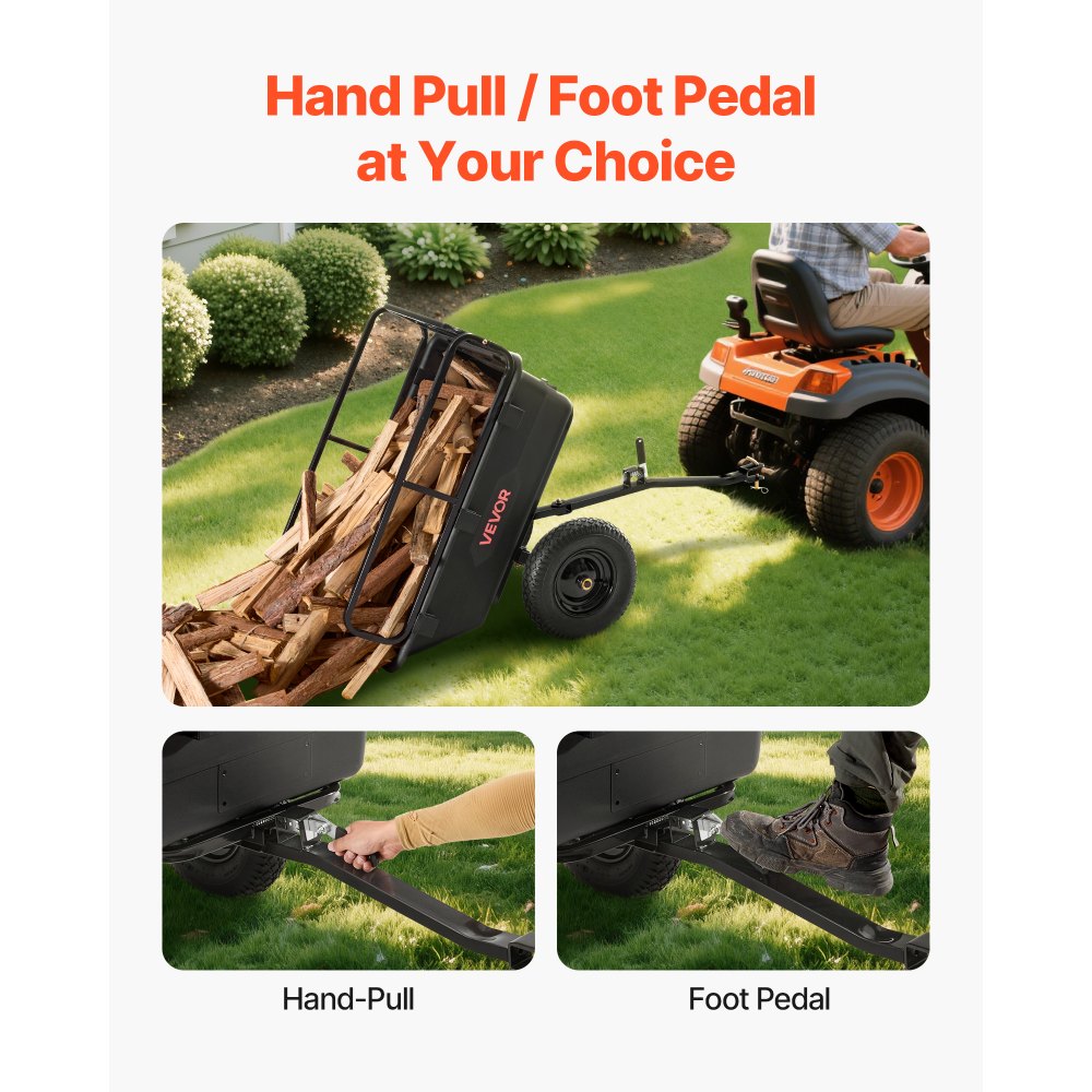 - Durable and Sturdy: The yard trailer with seamless, molded PP hopper adds thickness and prevents rust and damage, ensuring long-term durability. It withstands exposure to sun and moisture, is easy to clean, and prevents dirt buildup, reducing maintenance concerns.