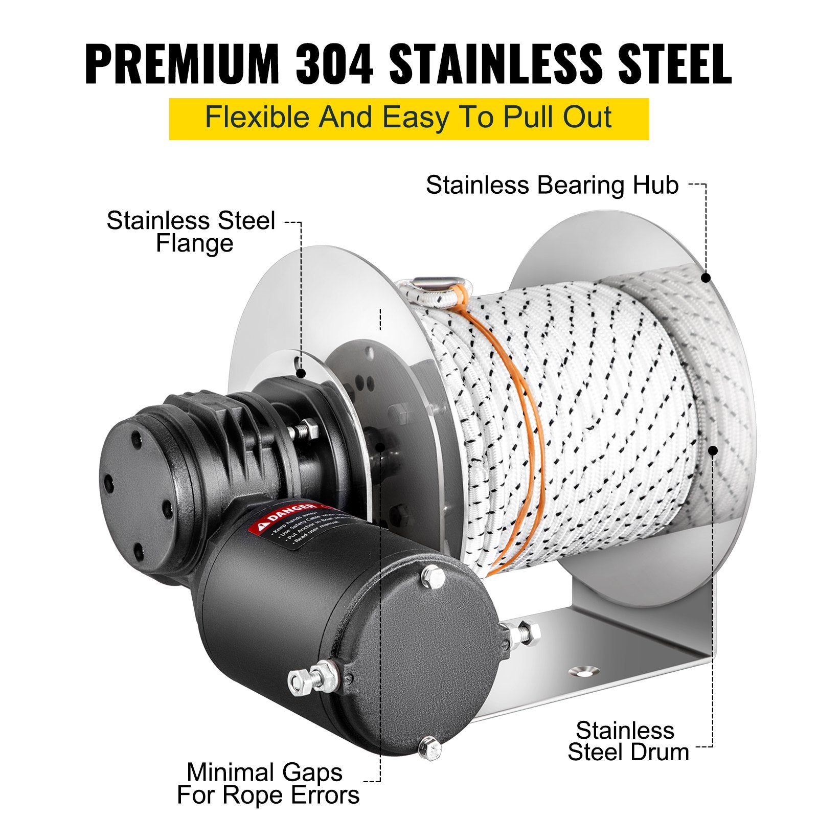 Electric Anchor Winch with 8mm x 90m Rope, 3000 kg Load Capacity, 950W Motor