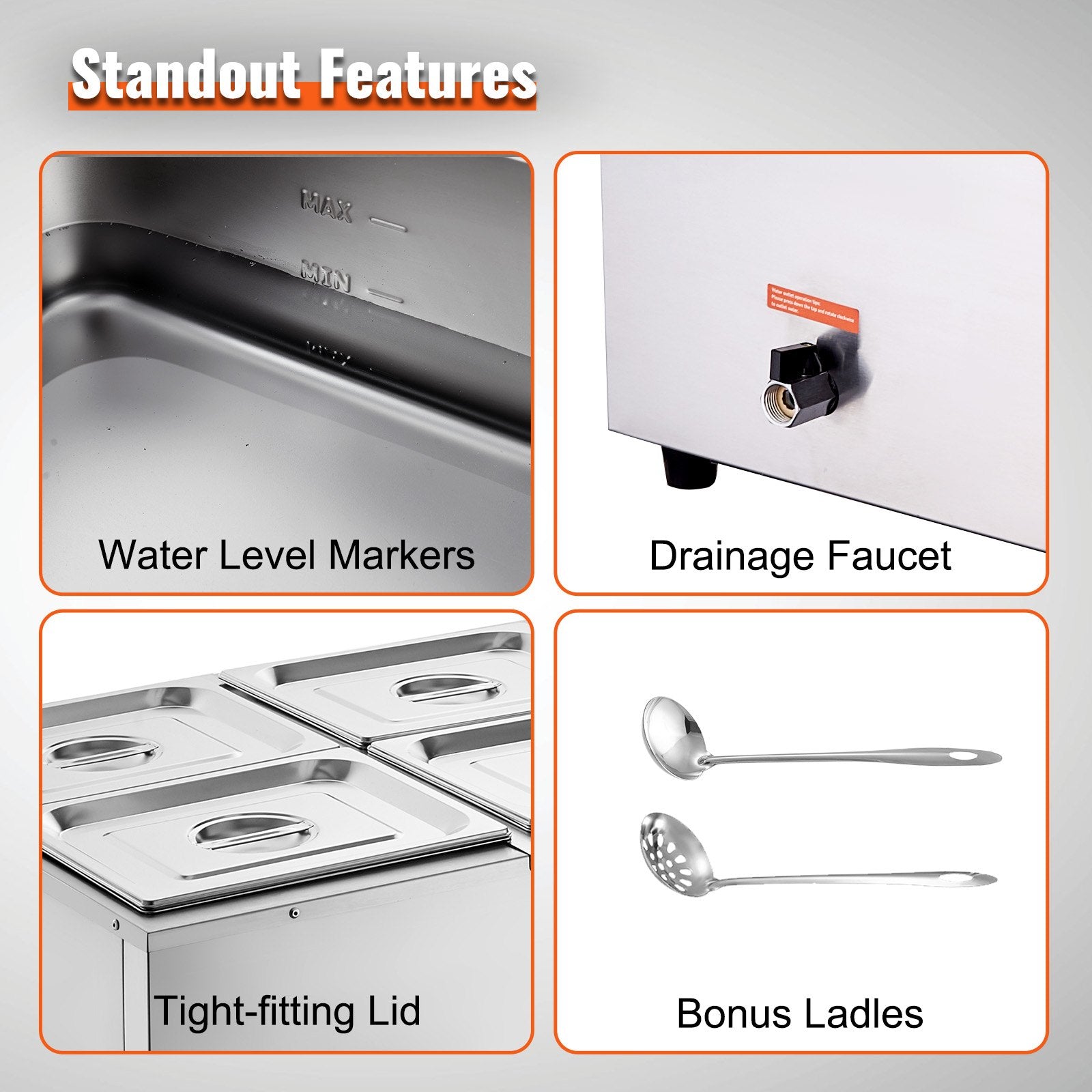Commercial Electric Food Warmer Countertop Buffet 4*12 Qt Pan Bain Marie