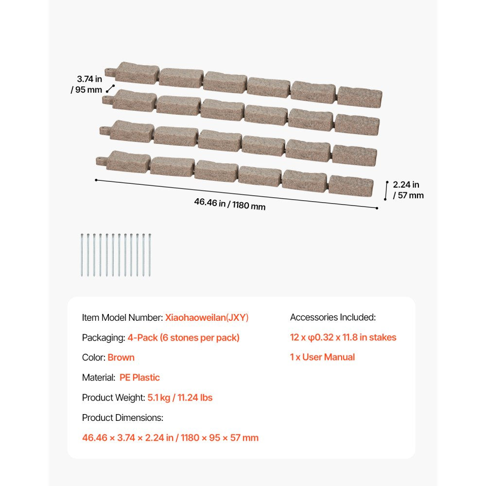 Color: Brown,Item Model Number: Xiaohaoweilan(JXY),Packaging: 4-Pack (6 stones per pack),Product Weight: 5.74 kg/ 12.65 lbs,Material: PE Plastic,Product Dimensions: 1180 x 95 x 57 mm / 46.46 × 3.74 × 2.24 in