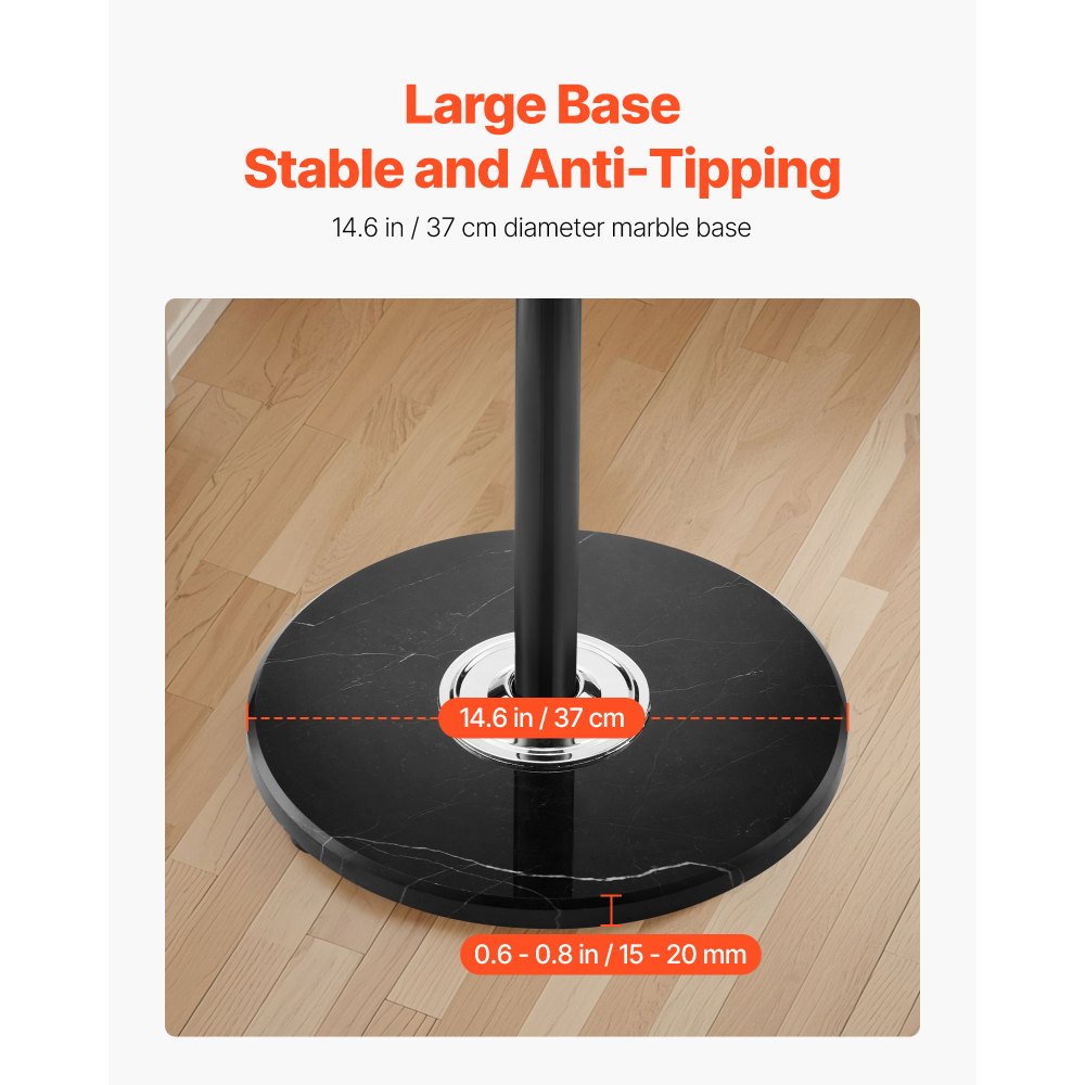 - Stable and Anti-Tipping: This coat rack stand features a 14.6-inch (370mm) stable marble base, providing a solid foundation that prevents tipping. Combined with its thickened carbon steel main rod, umbrella holder and anti-slip bottom pads, it ensures reliable stability when loaded with coats, hats, ties, bags and umbrella