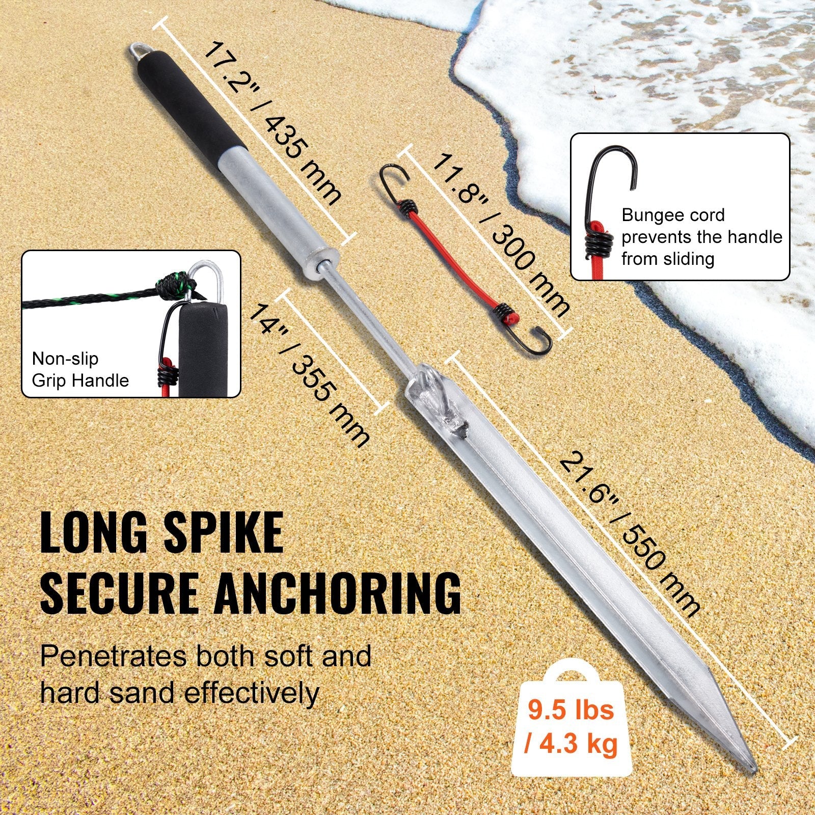 Sand Spike Boat Anchor Pole, 36" Galvanized Carbon Steel Slide Anchor Shore Spike, Self-Hammering Beach Spike Anchor for Small Boat Jetski Pontoon Kayak, with Oxford Storage Bag and Bungee Cord
