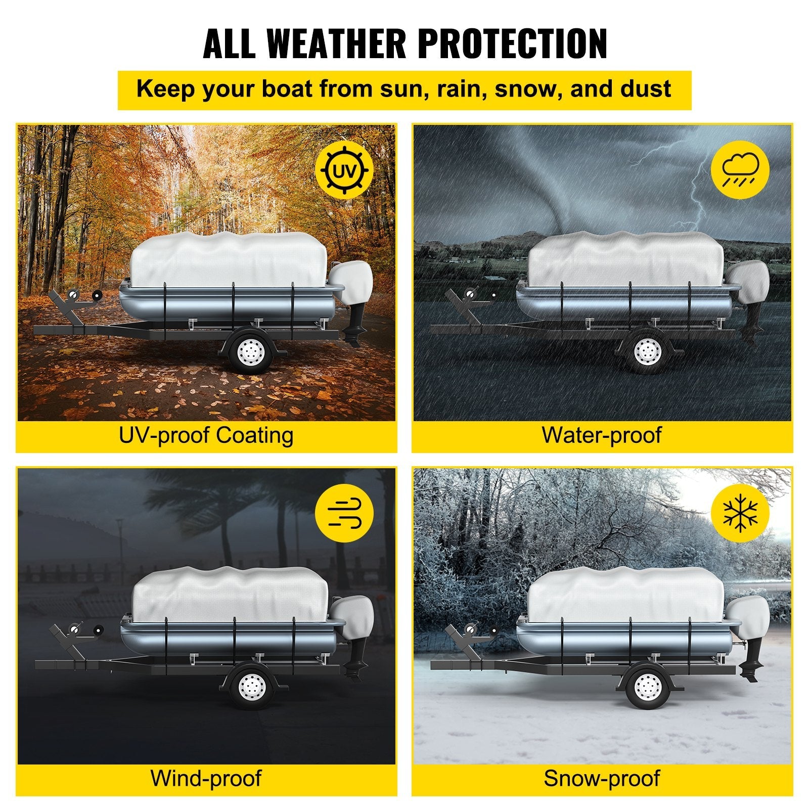 Heavy Duty Marine Pontoon Boat Cover, Fits 5.18-6.1m Boats, 600D Oxford Fabric
