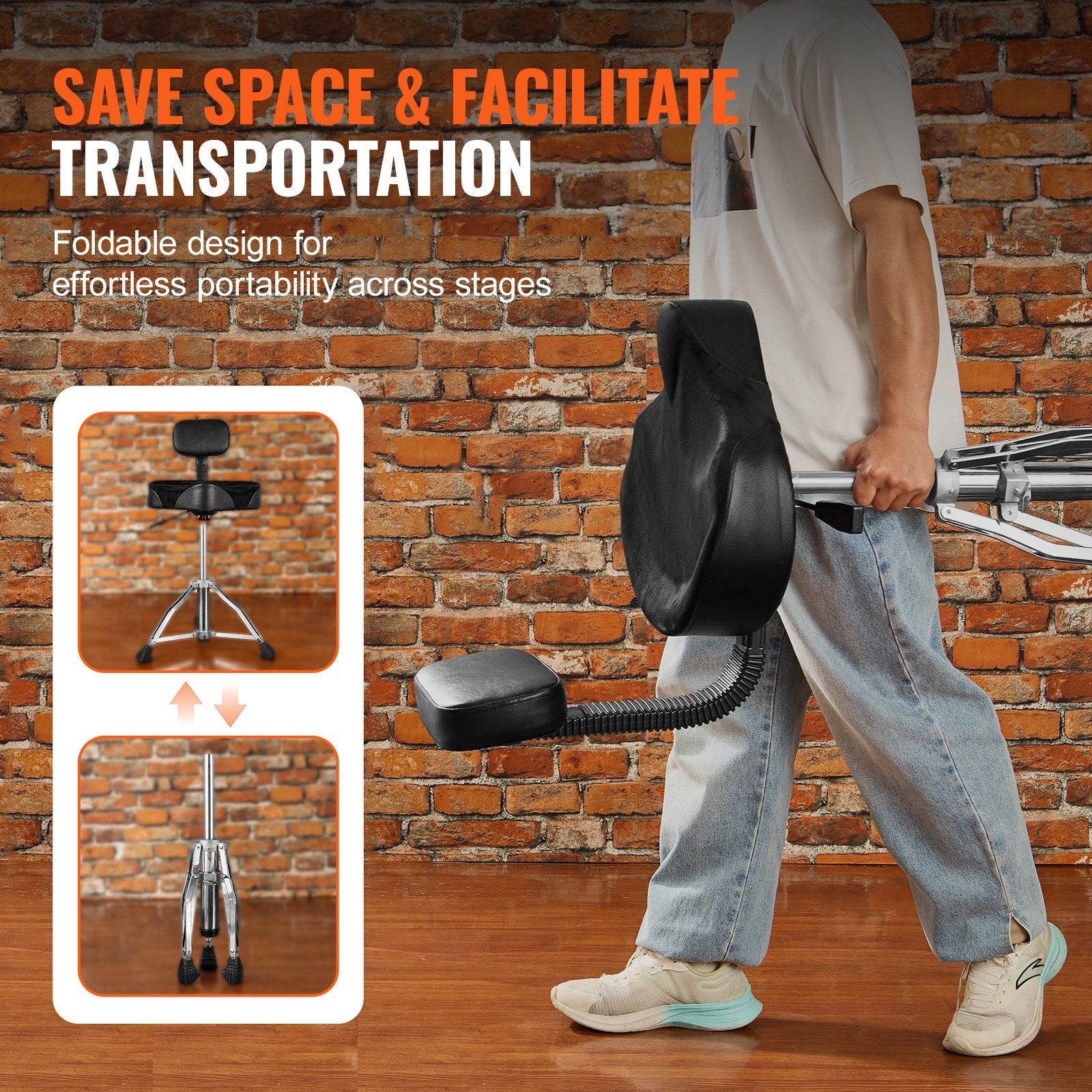 Drum Throne with Backrest, 490-640 mm Height Adjustable, Hydraulic Saddle Padded Drum Stool Seat with Anti-Slip Feet Drumsticks 227 kg Max Capacity, 360°Swivel for Drummers
