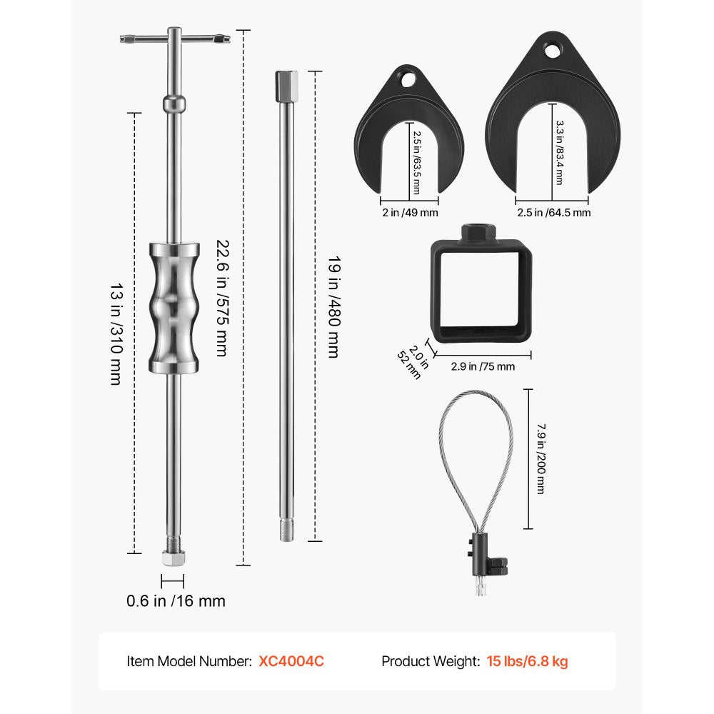 - Extended Slide Hammer: Our 4 lbs slide hammer measures 22.6 inches, plus a 19-inch extension rod for deeper access. Precision threads fit 5/8 in-18 adapters with ease
