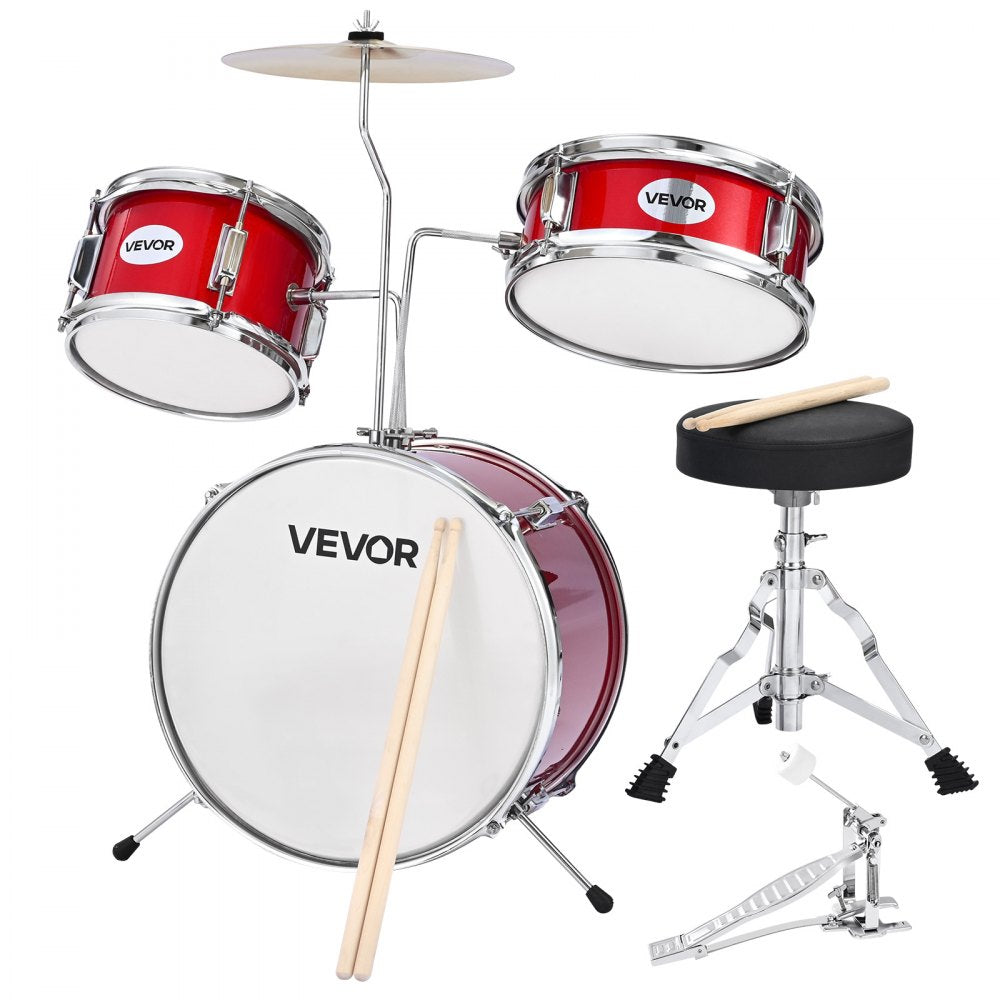 VEVOR Kids Drum Set 3-Piece Beginner Drum Kit with 355.6 mm Bass Drum (Red)