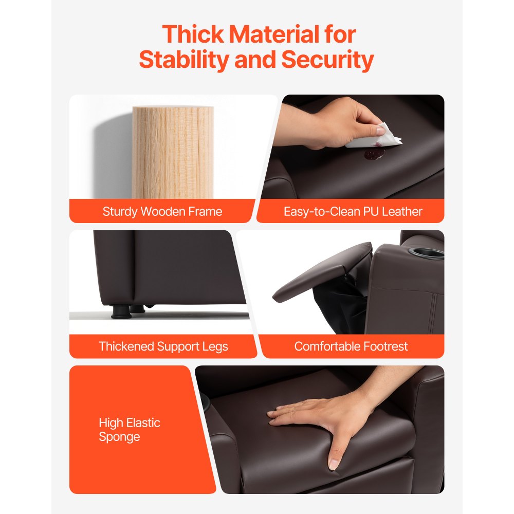 VEVOR Kids Reclining Chair PU Leather Toddler Recliner with Cup Holder (Brown)