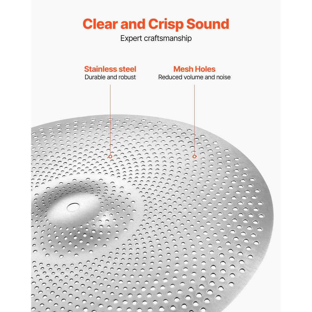 - Bright, Crisp Sound: Our cymbal pack is made with premium alloy and features grooves and mesh holes that deliver clear, vibrant tones. The polished finish enhances both feel and look, while minimizing harsh overtones for a smooth performance