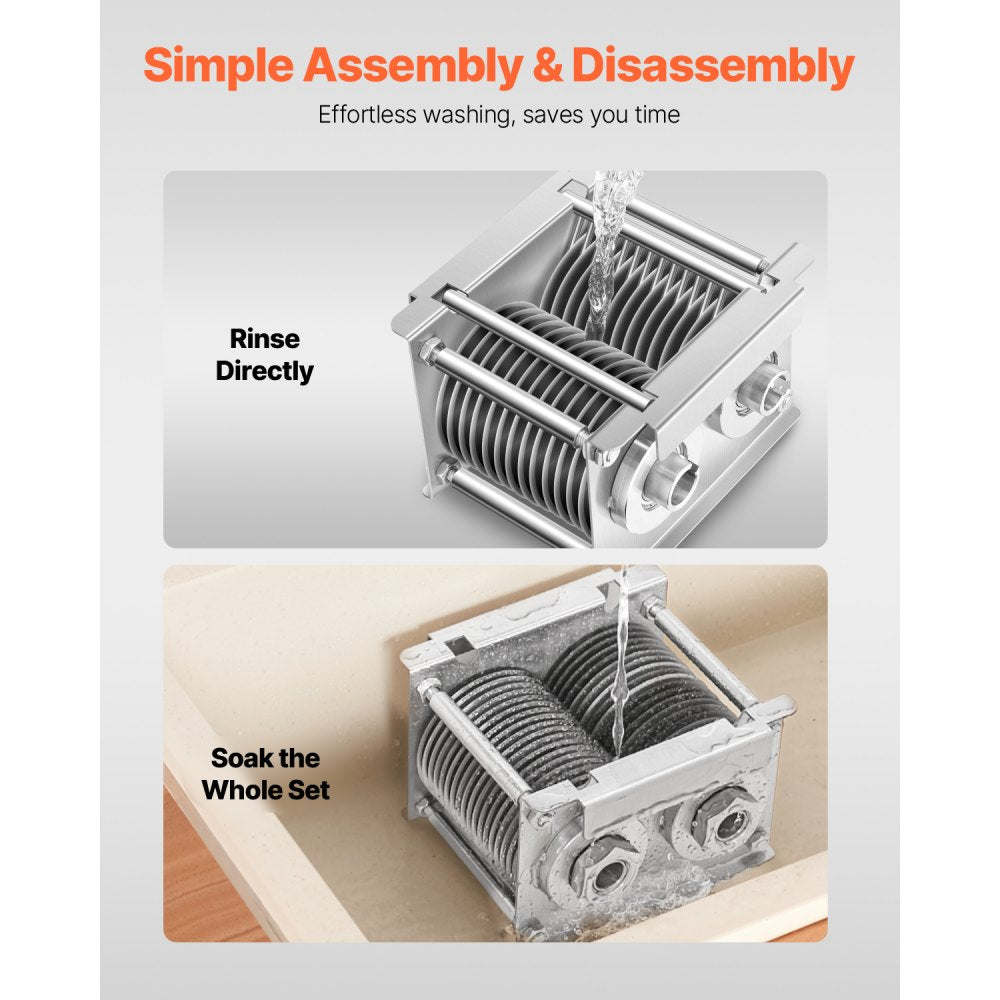 - Premium Stainless Steel Blades: With 26 sharp, thin stainless steel blades, our meat cutter machine blade set ensures smooth, clean cuts without leftover meat. The added stainless steel spacer helps keep the machine running steadily and efficiently.