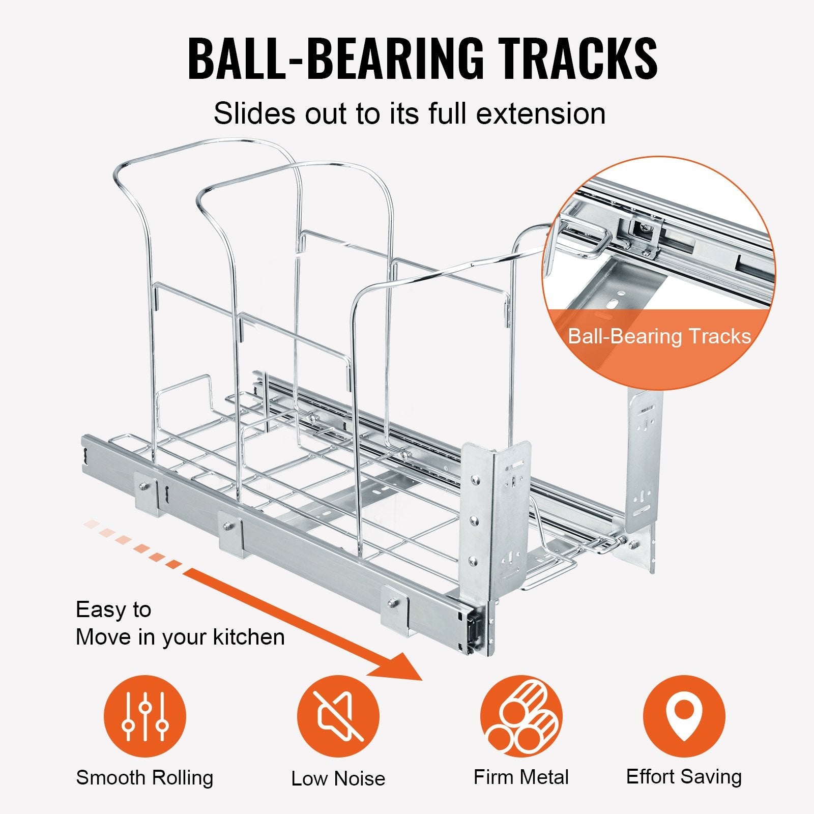 Pullout Kitchen Trash Bin 35L with Handle, Grey, Smooth Sliding Rails