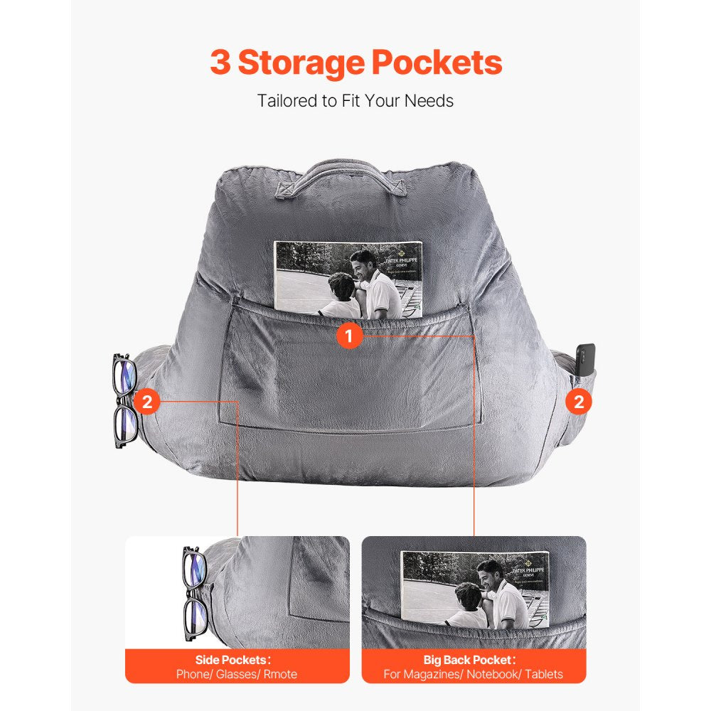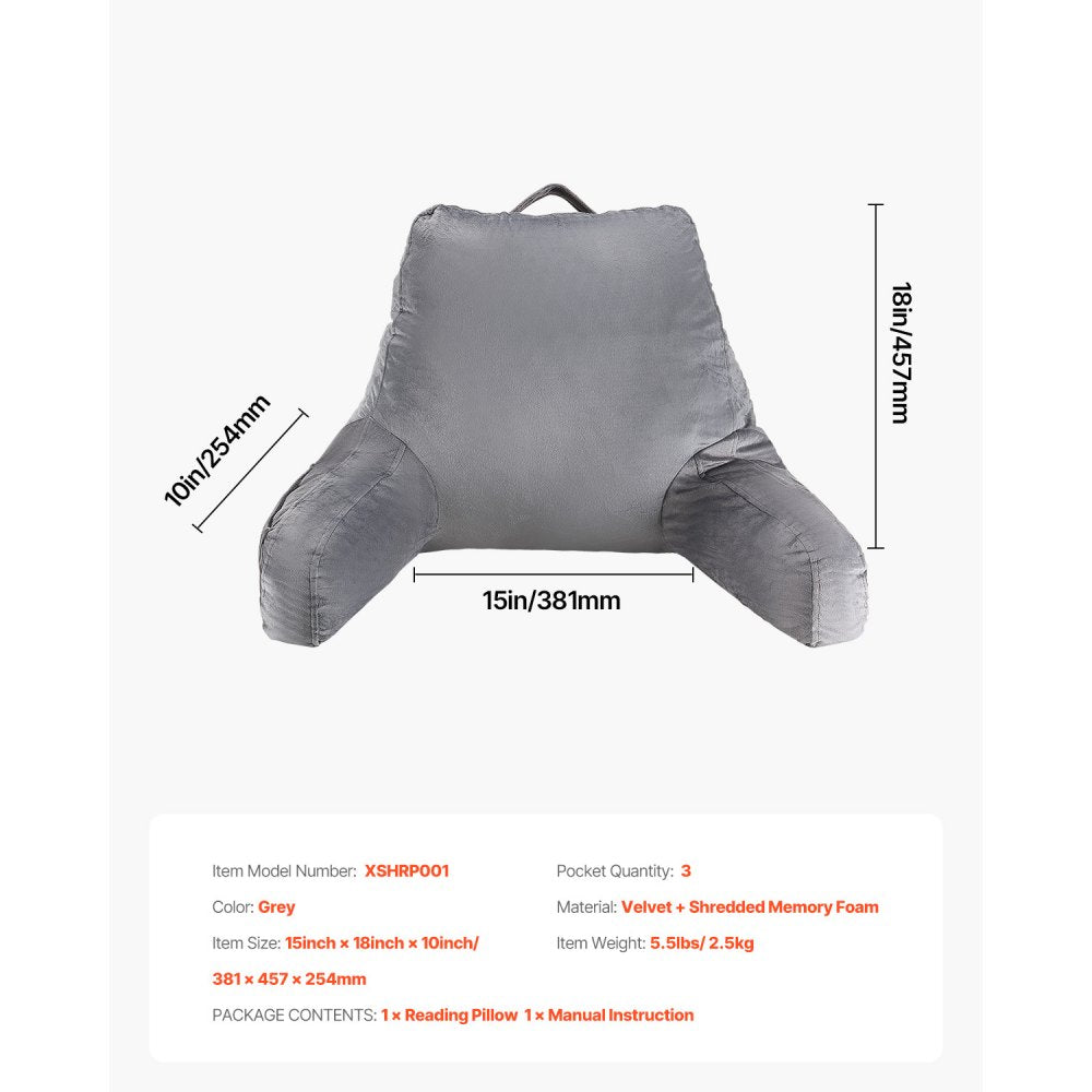 VEVOR Reading Pillow Standard Size Bed Pillow with Shredded Memory Foam Washable