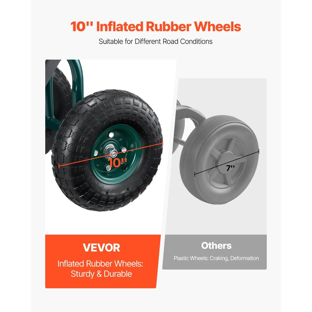 Rolling Garden Cart with Swivel Seat All-Terrain Wheels Tool Tray 136kg