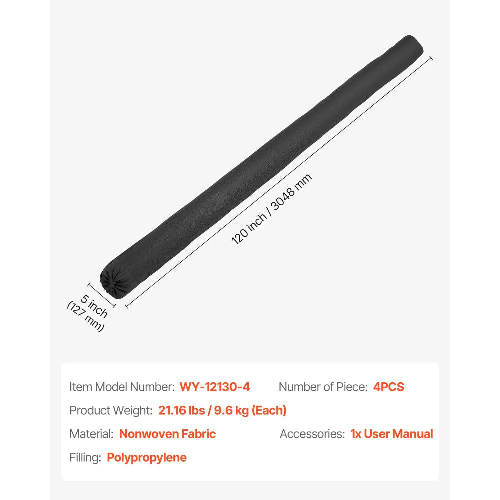 Item Model Number: WY-12130-4,Product Weight: 21.16 lbs / 9.6 kg (Each),Material: Nonwoven Fabric ,Filling: Polypropylene,Single Product Size: 5 in x120 in / 127 mm x 3048 mm,Number of Piece: 4PCS