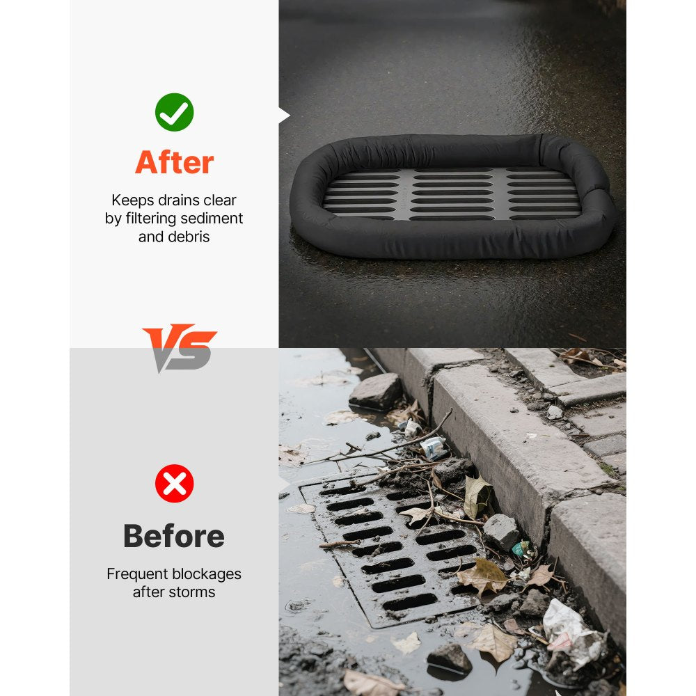 - Efficient Sediment Filtration: This sediment filter sock effectively captures sediment, debris, and solid particles from rainwater runoff, preventing drainage clogs and protecting the environment.