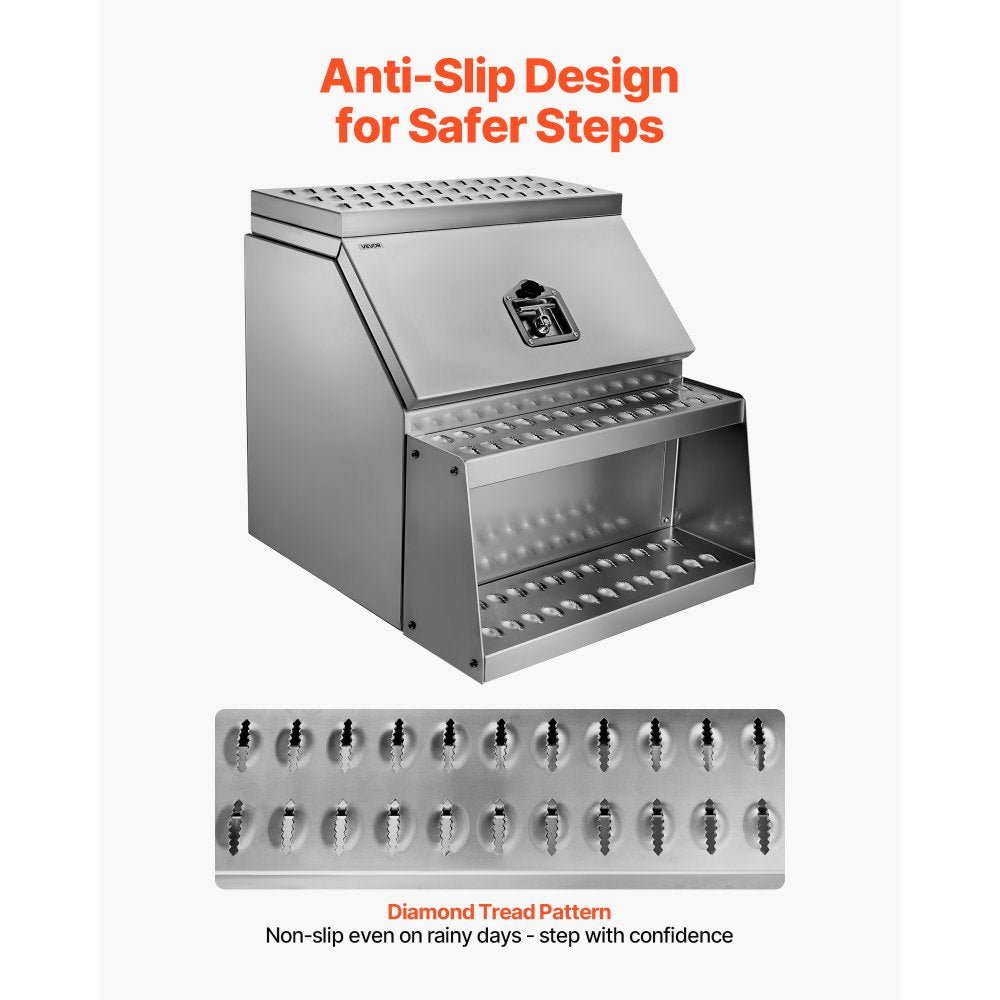 - Safe & Efficient Storage: Featuring a spacious 480 x 515 x 580 mm storage interior, a T-handle lock and 2 keys, this semi-truck saddle step box securely holds wrenches, screwdrivers, gloves, and other essentials, keeping them neatly organized and easily accessible