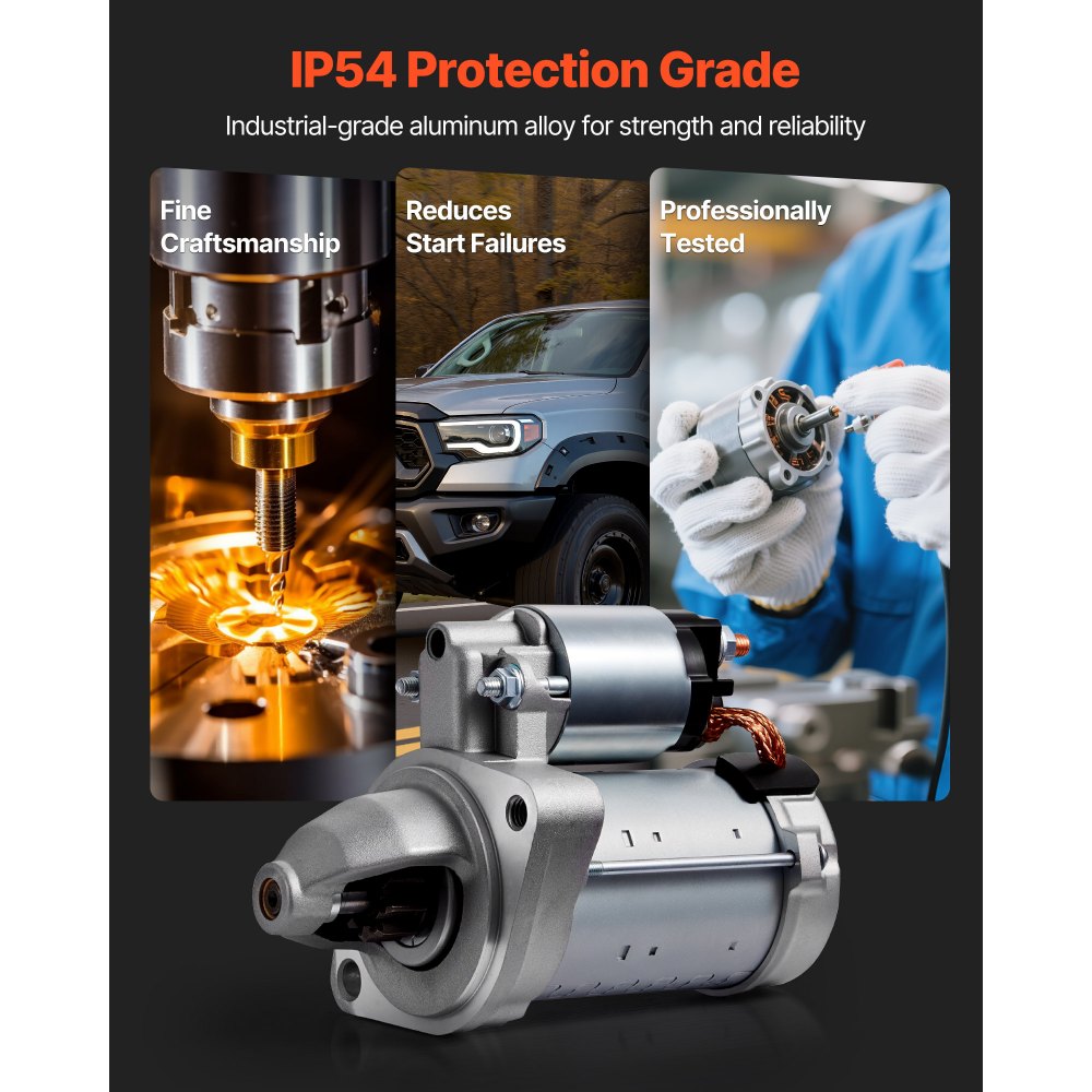 - Rustproof Aluminum Alloy: The OEM starter motor is made of industrial-grade aluminum alloy with precise manufacturing processes, ensuring long-lasting use with fewer failures or damages. It resists oil damage, improving the impact and wear resistance