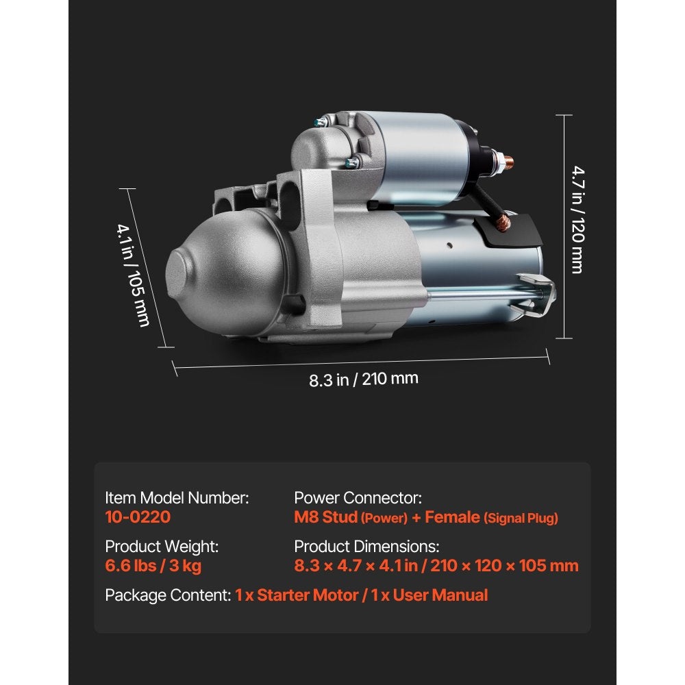 - Rustproof Aluminum Alloy: The OEM starter motor is made of industrial-grade aluminum alloy with precise manufacturing processes, ensuring long-lasting use with fewer failures or damages. It resists oil damage, improving the impact and wear resistance