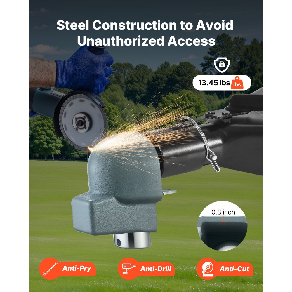 - Heavy-duty Anti-theft Design: Made from tough carbon steel, this trailer lock weighs 13.45 lbs with a 0.3-inch thick wall, resisting crowbars, drills, and tools. It’s built to keep your trailer secure and minimize the risk of theft